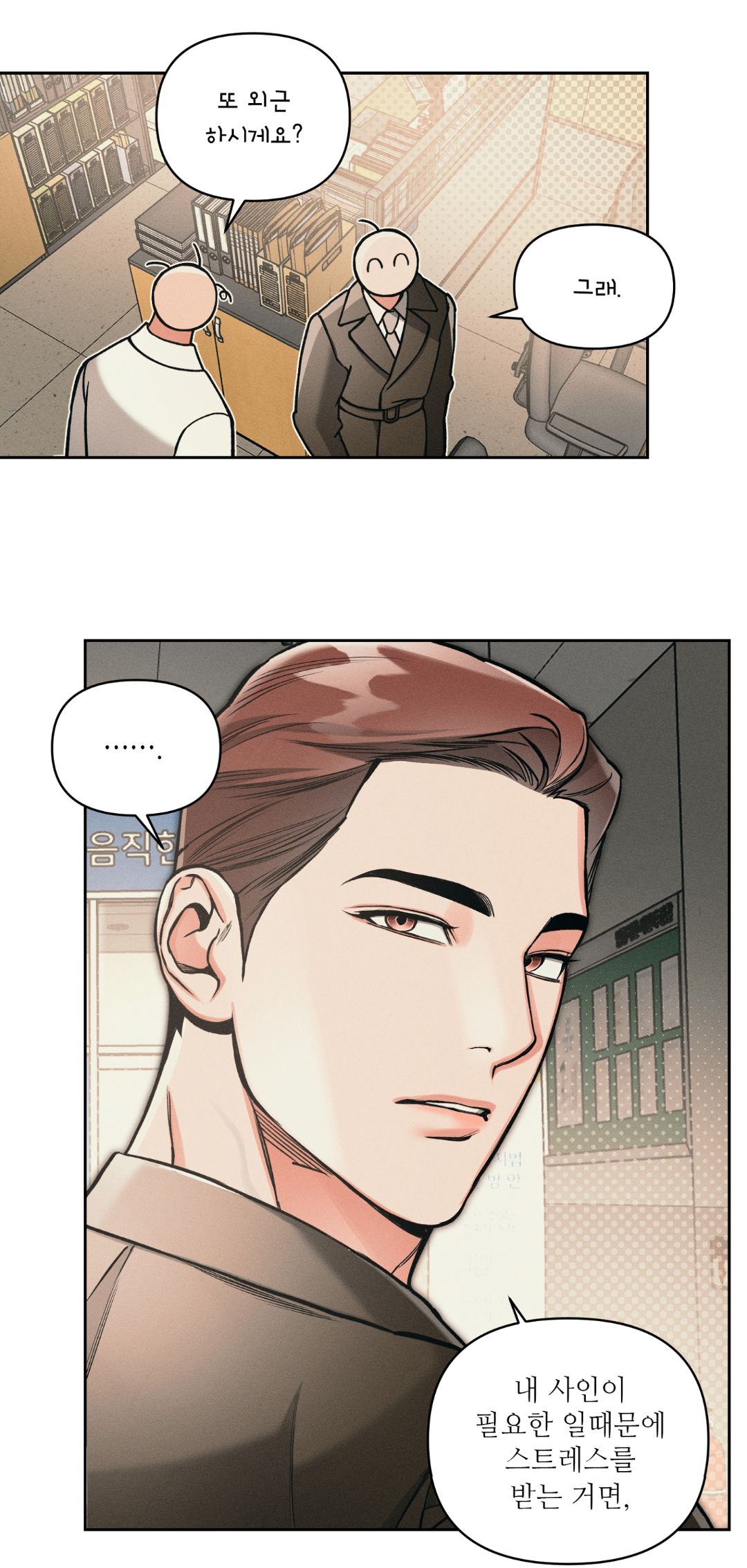 💭 Проблема в том, что я слишком талантлив. Я могу одновременно и работать, и думать о Пак Мокхве. Я даже работал вчера сверхурочно вместе с инспектором Со, пытаясь выкинуть его из моей головы.