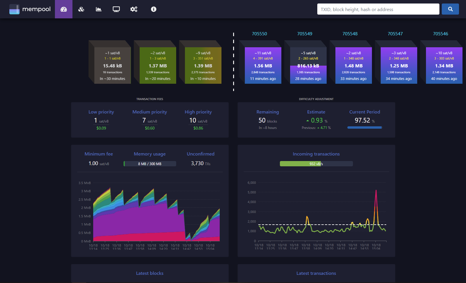 Заходим на сайт mempool.space и видим данную картину: