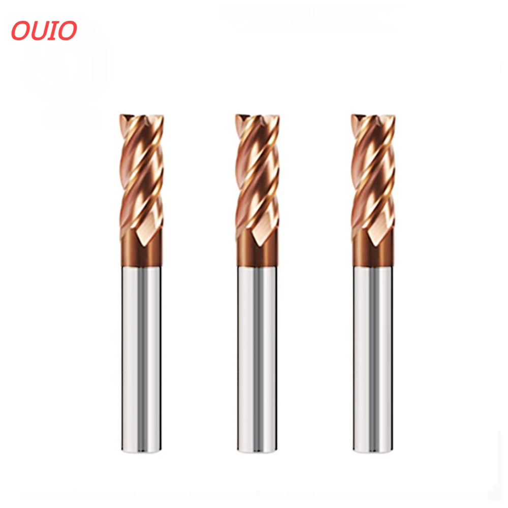 OUIO HRC55 CNC Carbide Flat End Mill Tungsten Cutter 2 4 Flute Metal Steel Machining Tool Key Square Router Bit 3 4 6 8 12 Shank - Купить с бесплатной доставкой