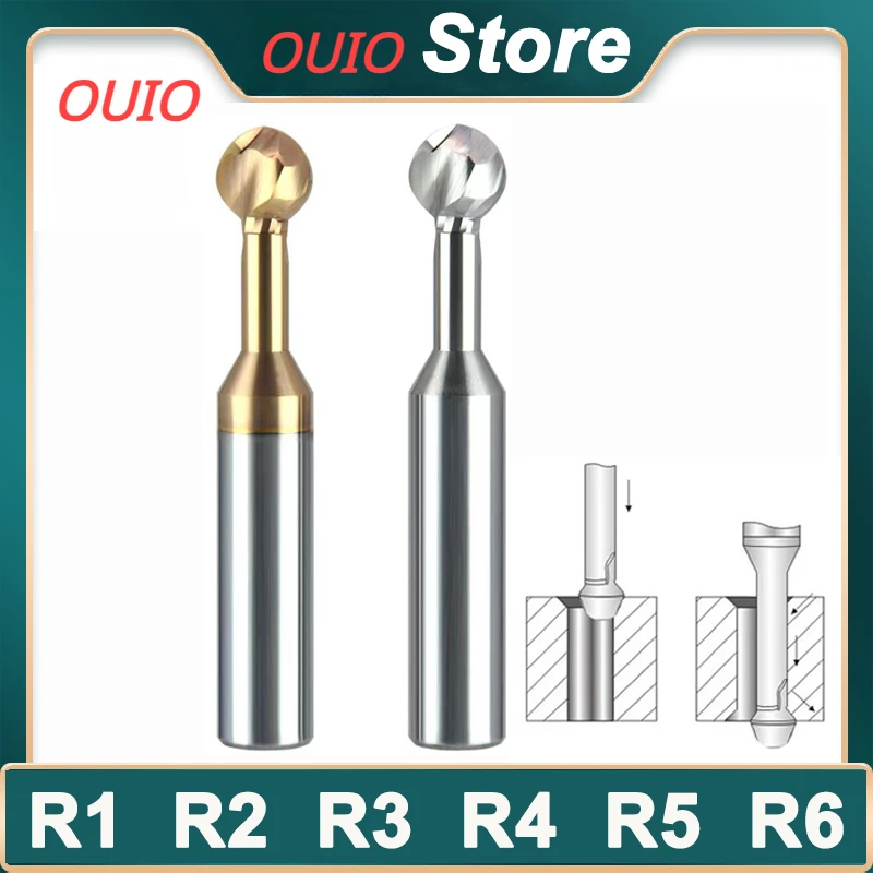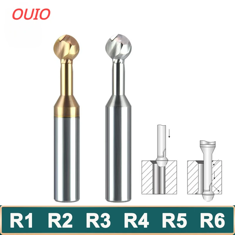 OUIO Tungsten Coated Lollipop Ball Cutter Alloy for Aluminum Arch Ball End Milling Cutter Forming Milling Cutter Ball R1-R6mm - Купить с бесплатной доставкой