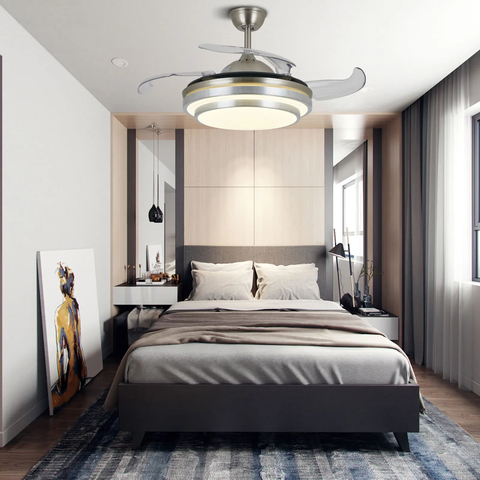 cWXFAHXXHere you can buy OUKANING Modern 36''Ceiling Fan Light LED Dimmable Retractable Blade Chandelier With Remote + 3 Color with free delivery to your post office.