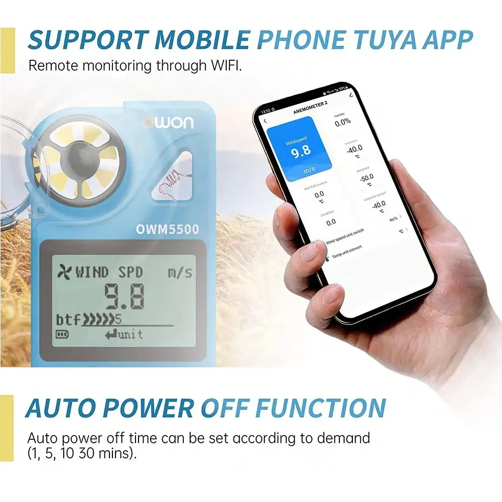 OWM5500 Handheld Smart Wind Speed Meter Digital Anemometer Humidity Temperature APP Remote Control 8000 Sets Data Storage - Купить с бесплатной доставкой