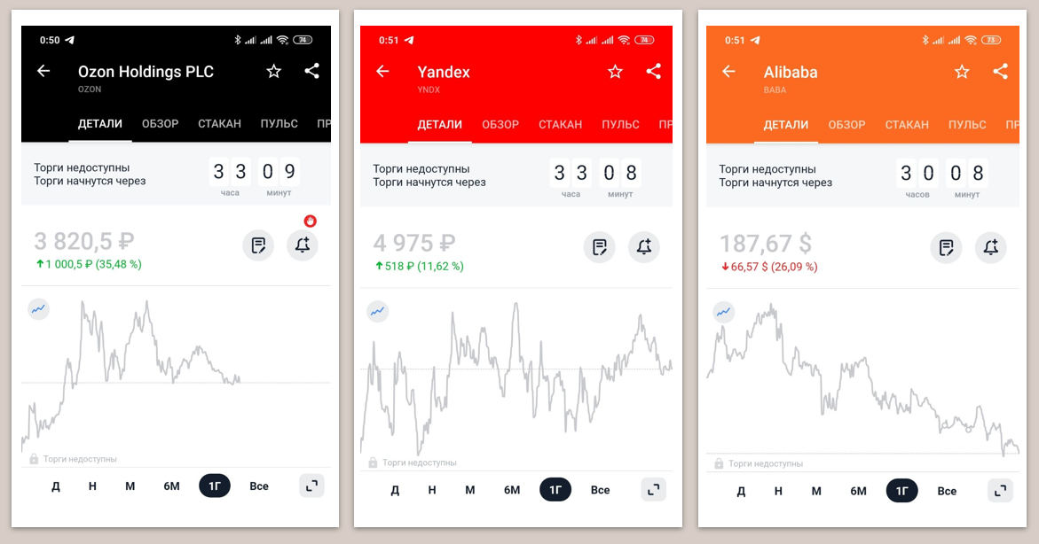 Я купил бы (в порядке приоритета): YNDX — из-за диверсификации по бизнесам; BABA — из-за диверсификации по странам (лучше небольшая, чем никакой вообще); OZON — в последнюю очередь, так как выше риск.