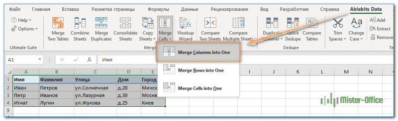 Объединить две колонки в одну