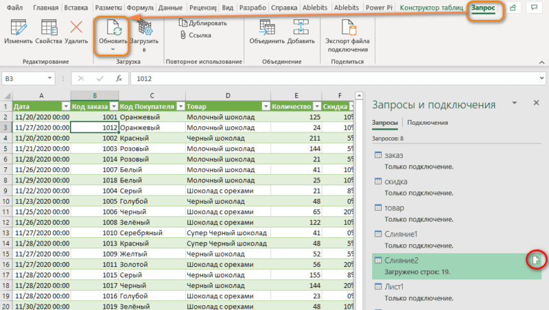 Объединить таблицу с разных листов