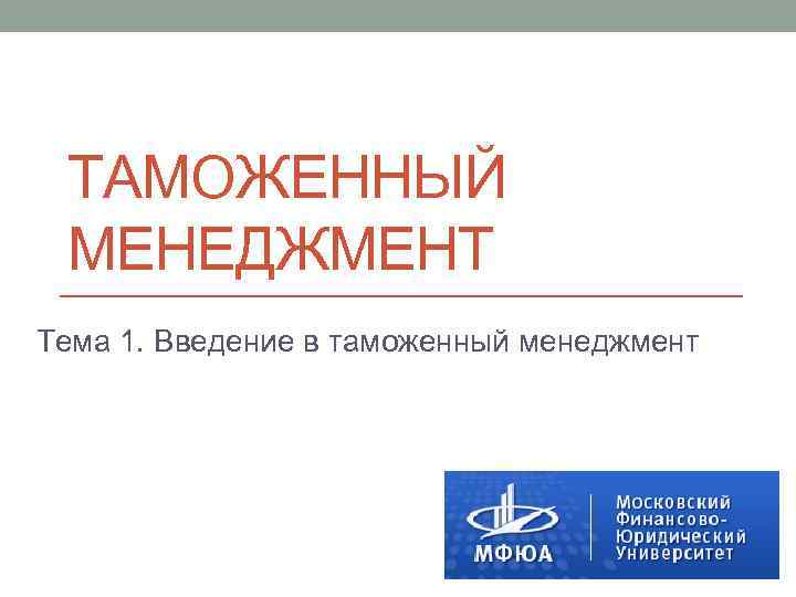 Объект таможенного менеджмента