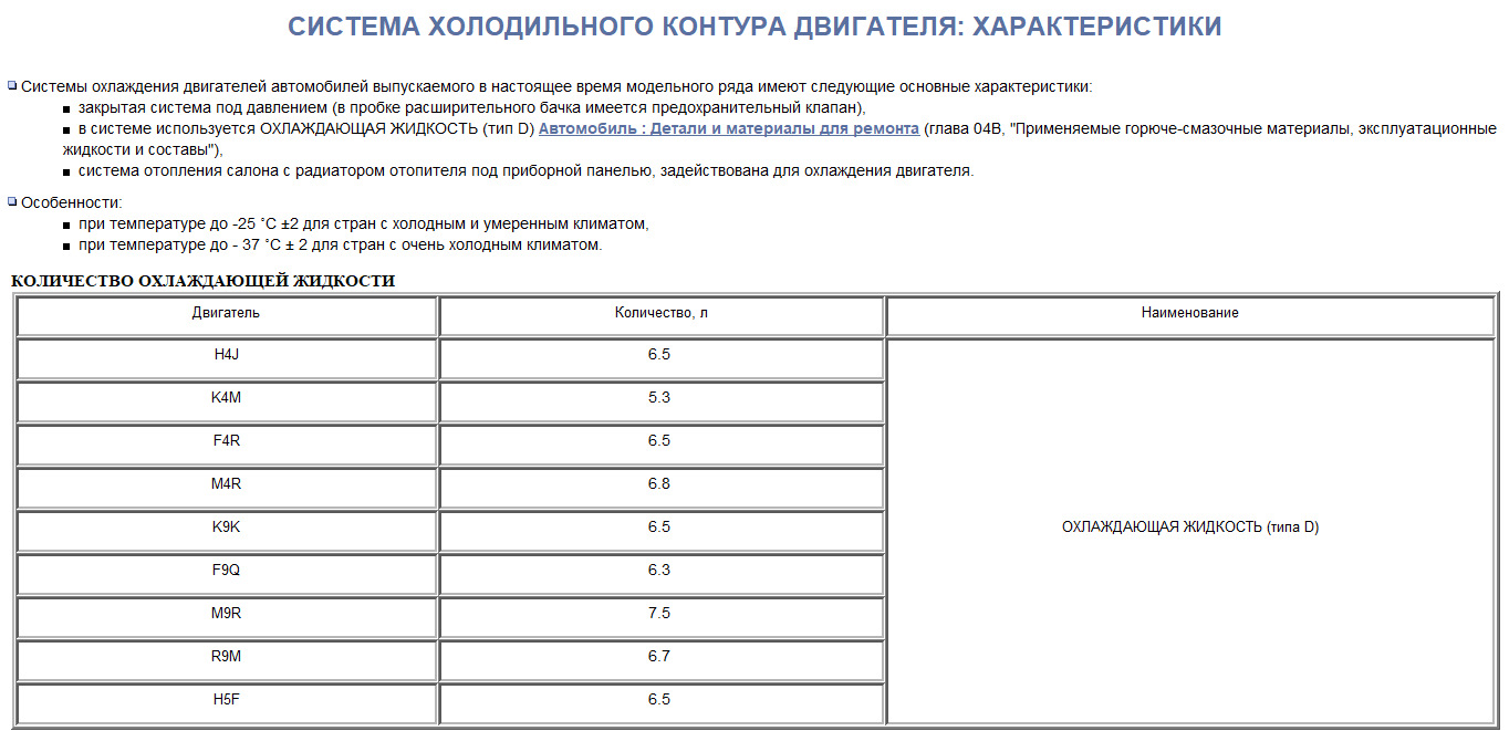 Объем антифриза сандеро