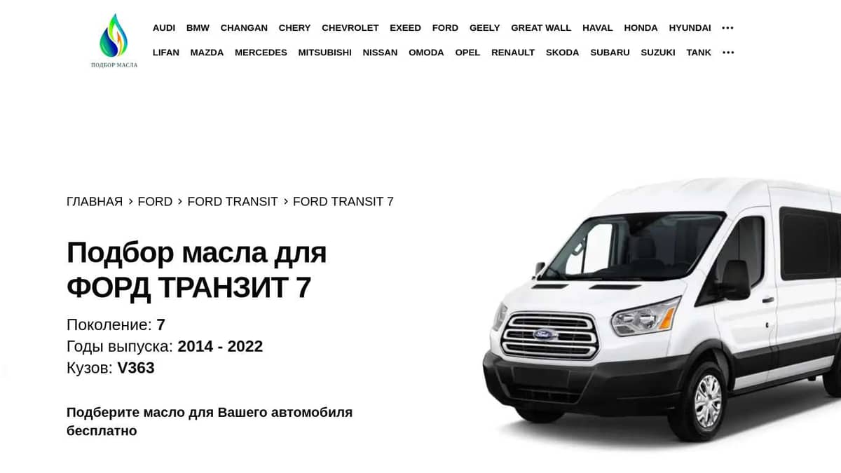 Объем масло двигатель форд транзит