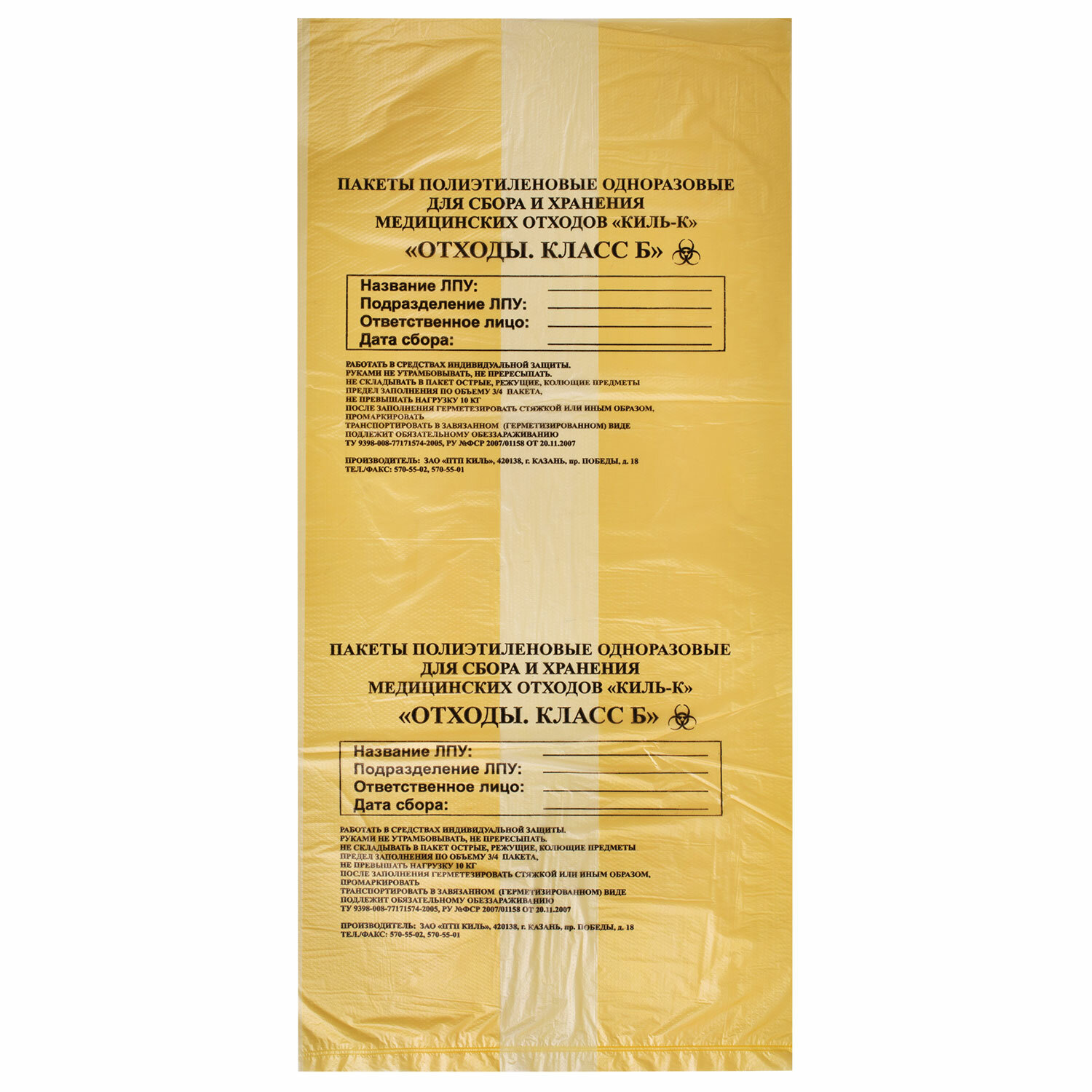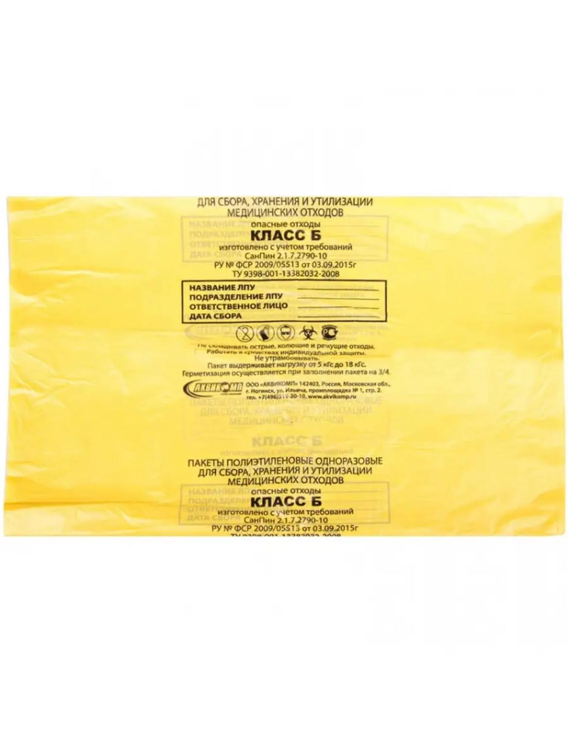 Объем пакета класса б