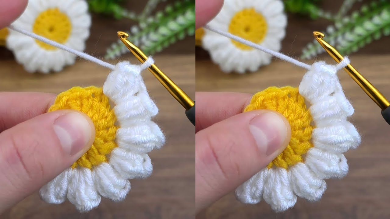 Объемные ромашки крючком 109 фотографий
