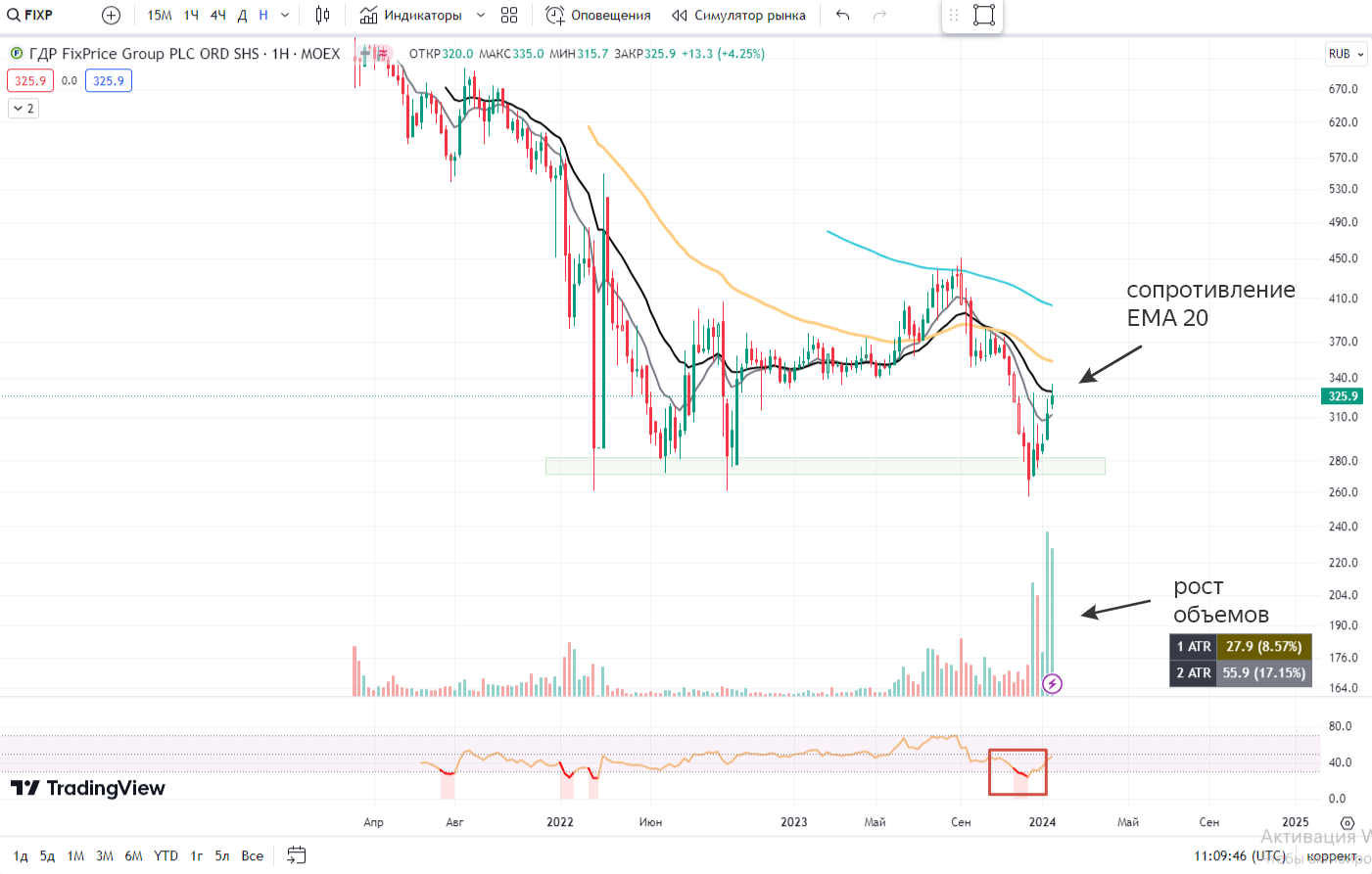 Важный момент: если бумага идет вниз, это не означает что она точно также будет выкуплена. Обращайте внимание на объемы у важных уровней!