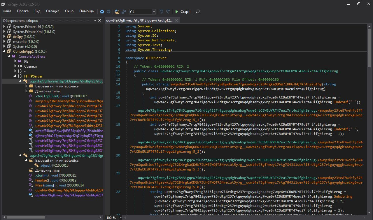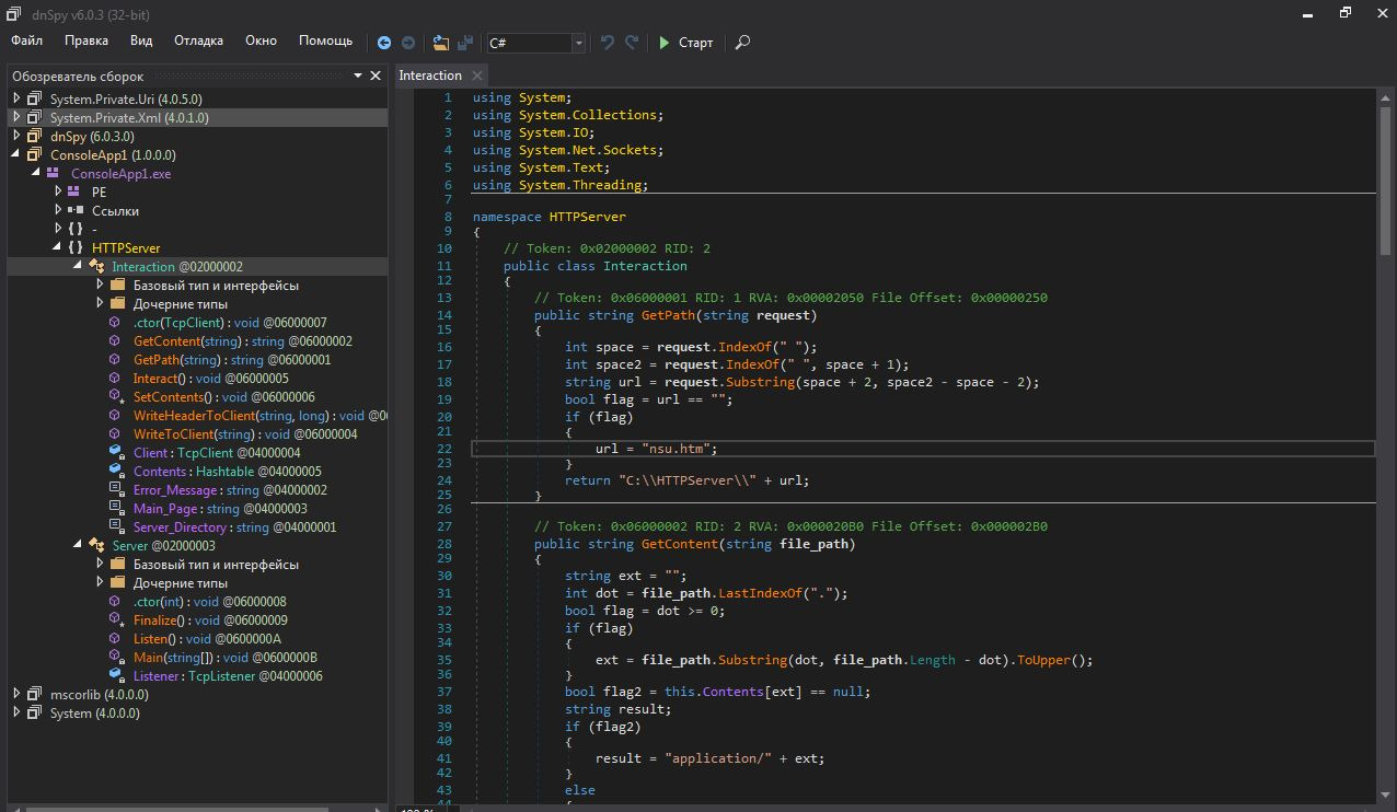 THack3forUЗараз ми на конкретному прикладі дізнаємось як можна частково захистити свою NET програму від взлому власними силами. Для прикладу ми візьмемо код простого сервера на C# .