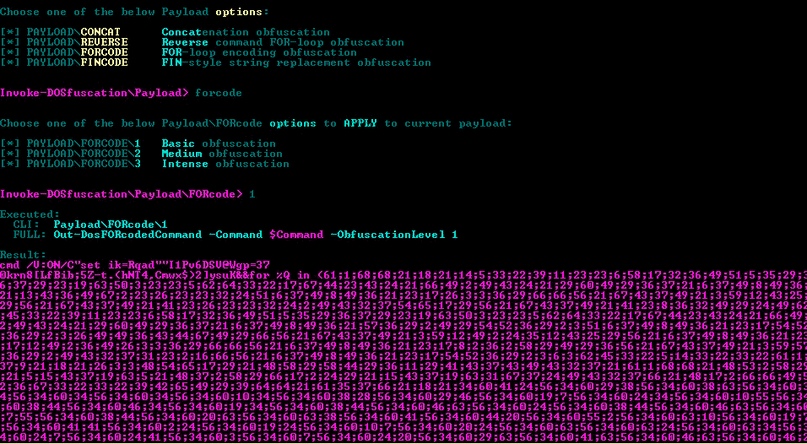 Import-Module .\Invoke-DOSfuscation.psd1 Invoke-DOSfuscation
