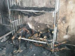 У него на правой руке браслет, на фото обгоревшего тела, он мертв( . Удалось потушить, спасатели извлекли из обломков обгоревшие тела . Фотография с обгоревшим полом уже гуляет по сети .