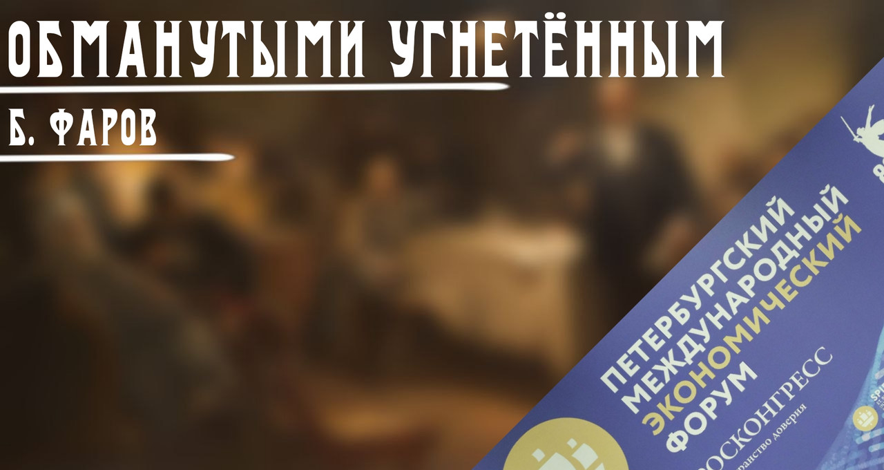 Петербуржский международный экономический форум — событие, о котором уже в какой раз требят со всех утягов буржуазные СМИ. Информационная цель форума, как мы знаем, одна - показать простым рабочим немыслимые успехи российского империализма, убедив их, что у нас все замечательно, говоря: