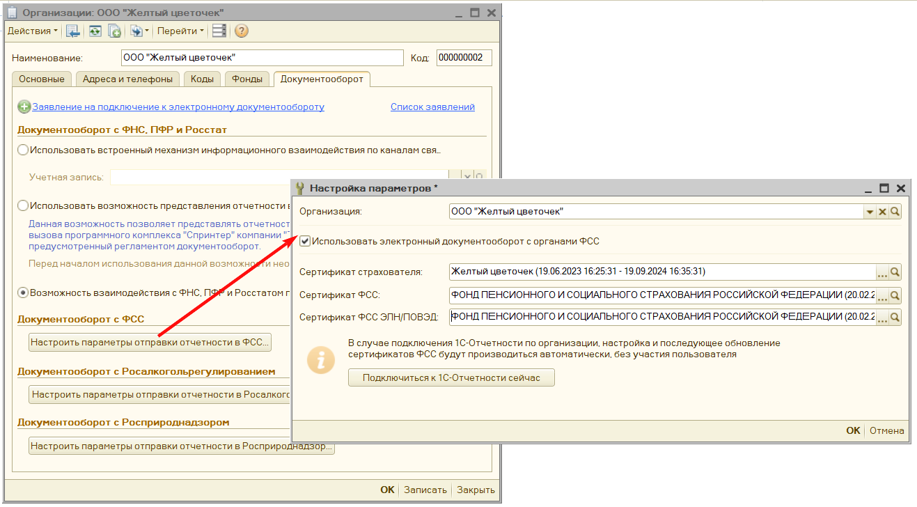 Обмен с фсс в 1с