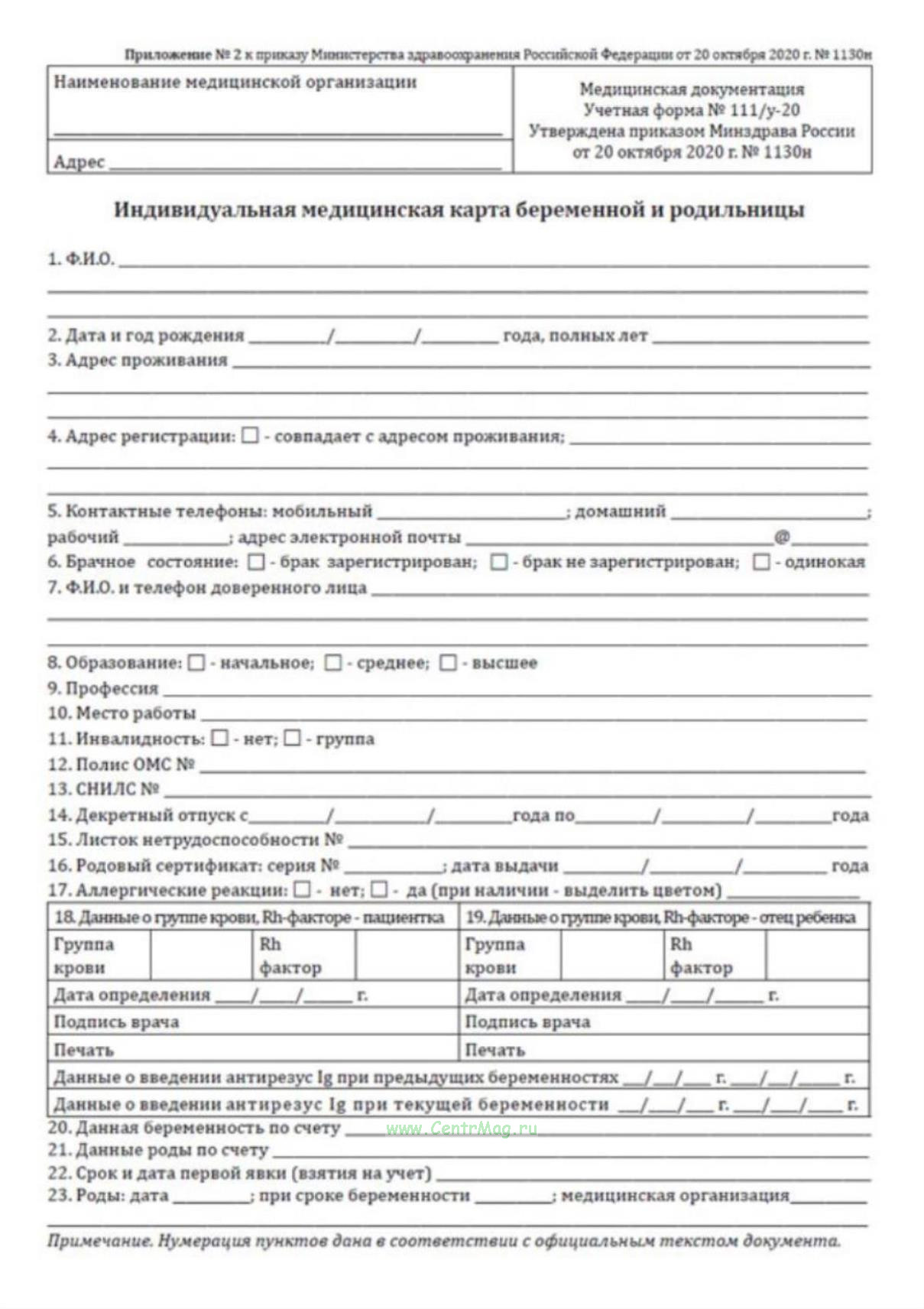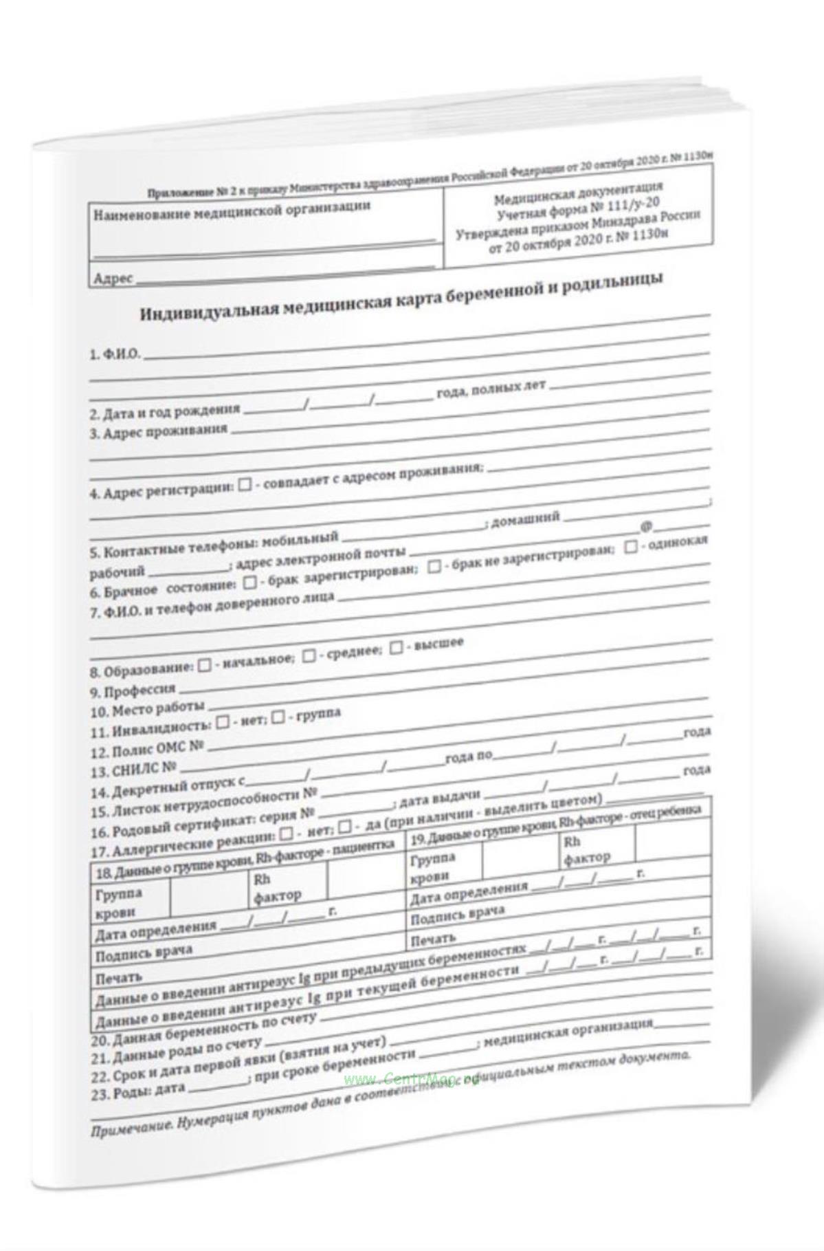 Обменную карту беременной форма 113 у