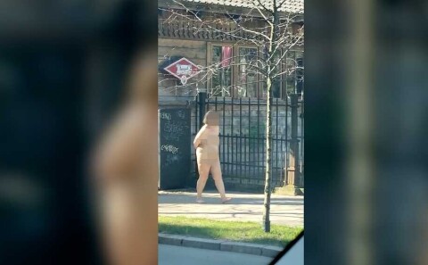 Обнаженная беременная женщина выбежала на улицу и села в случайно проезжавший мимо автомобиль . Сириец бросился вслед за ней и попытался остановить машину, но ему это не удалось .