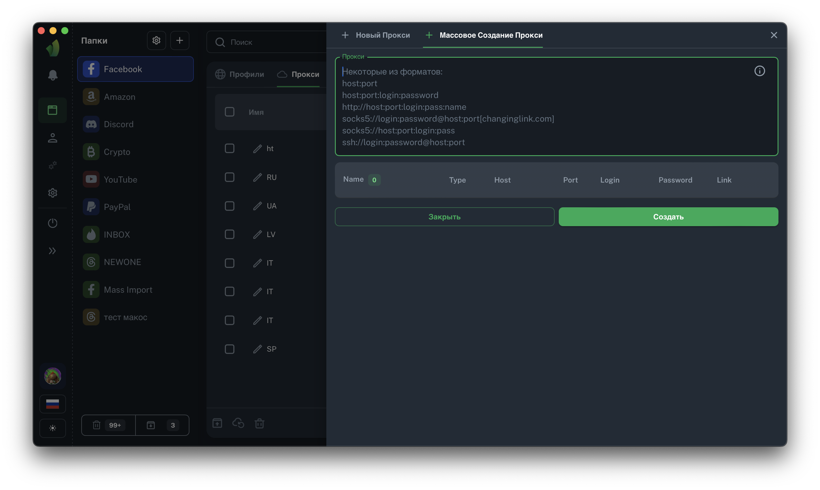Добавили возможность загружать прокси массово (списком), так как этот функционал критичен для тех, кто использует статические прокси с одинаковыми данными, но, к примеру, на разных портах. Это сильно облегчит жизнь и тем, кто переносит свои профили и прокси в Vision с другого антидетекта 😏