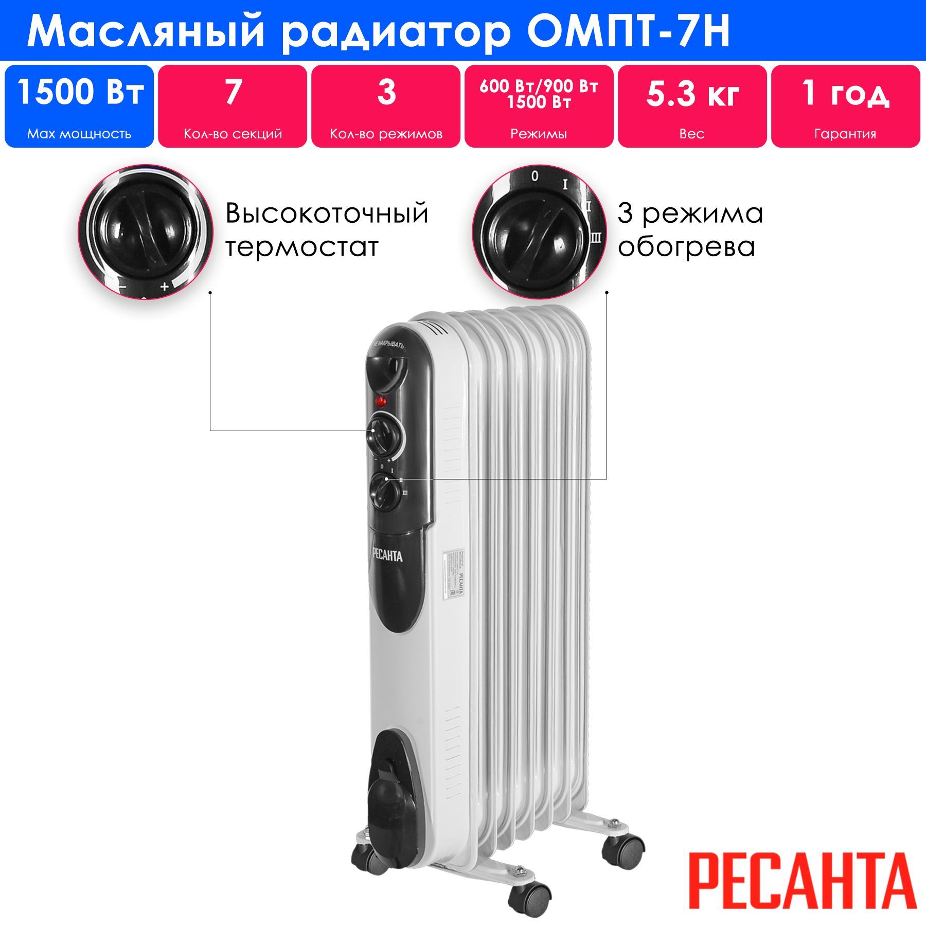 Обогреватель ресанта омпт 7н