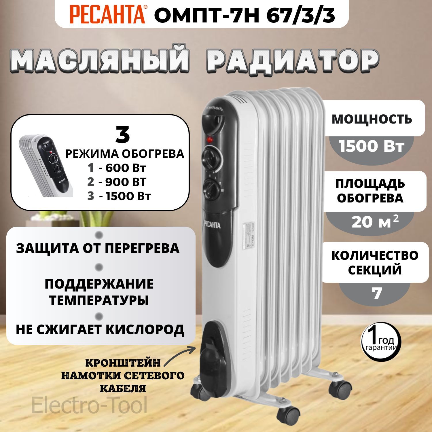 Обогреватель ресанта омпт 7н 133 фото
