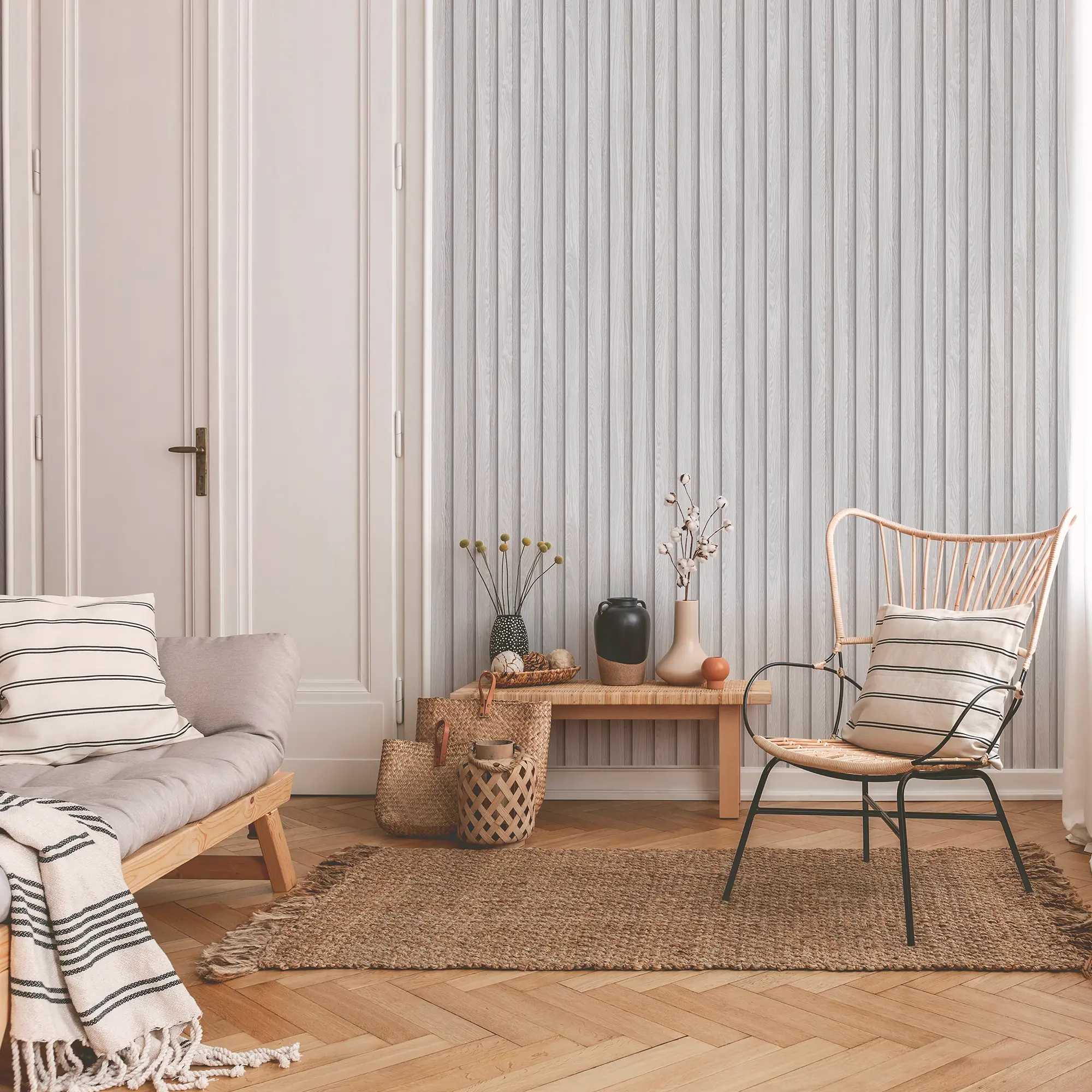 Обои белые рейки