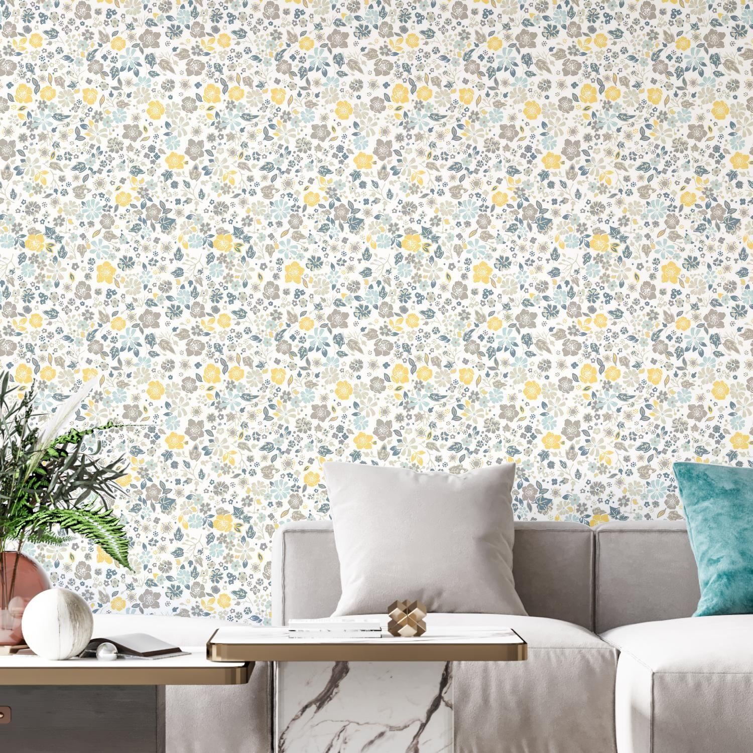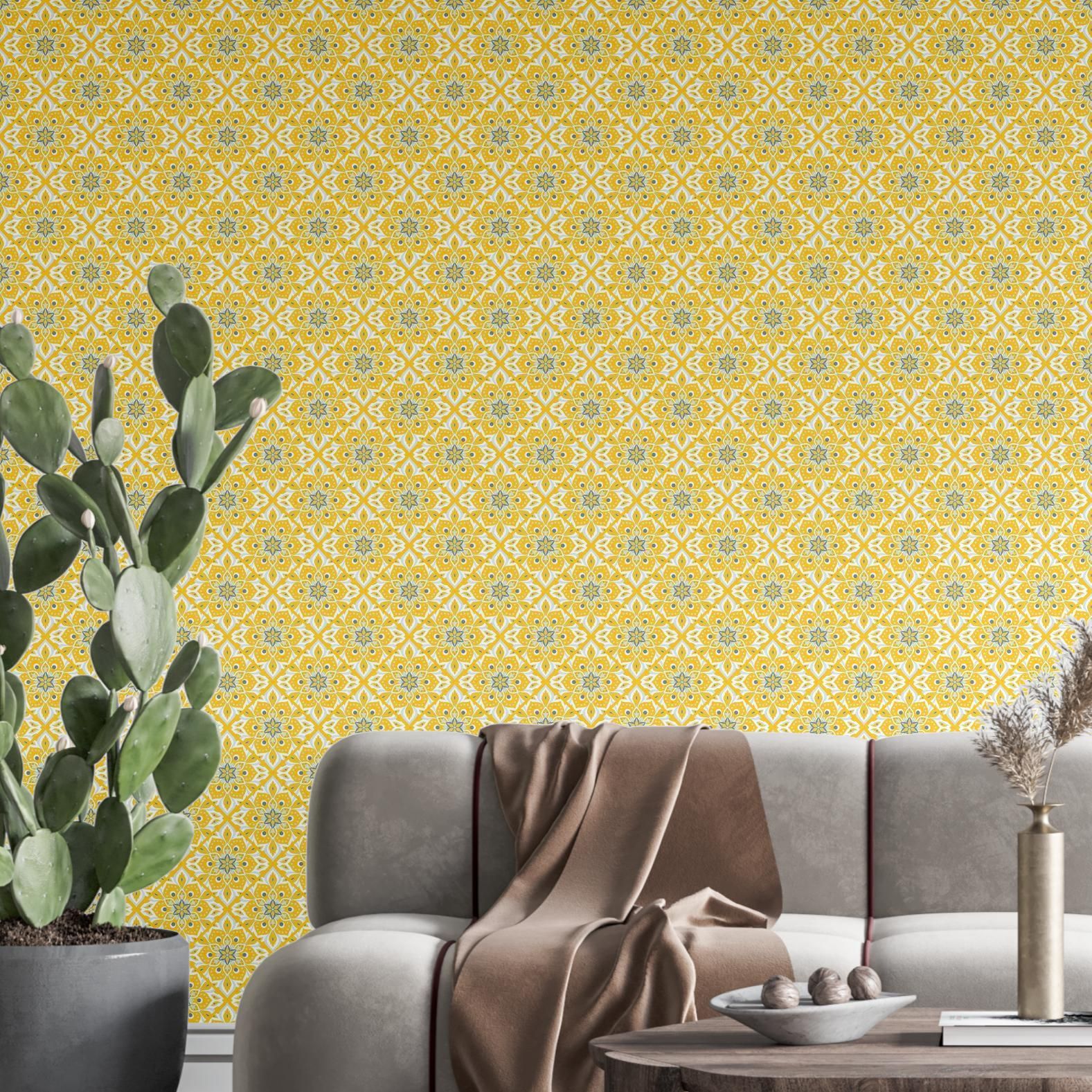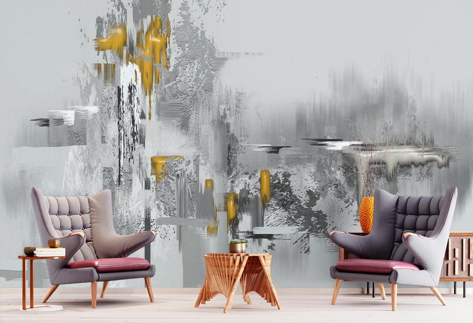Обои серые с желтым