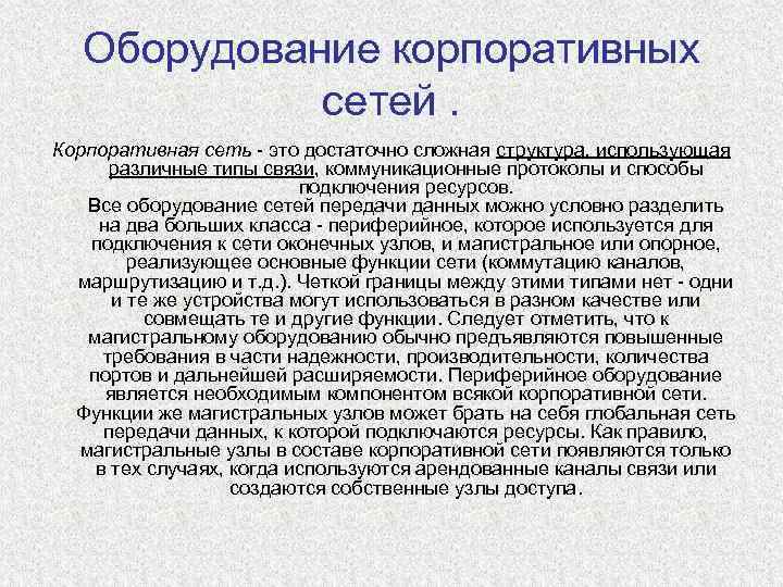 Оборудование корпоративной сети