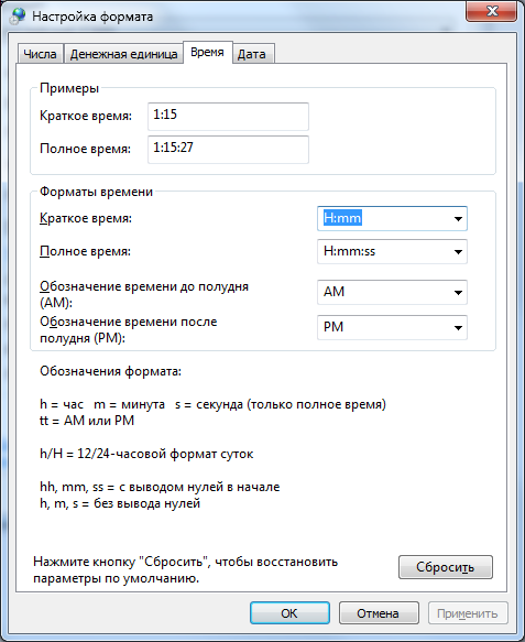 Обозначение формата даты