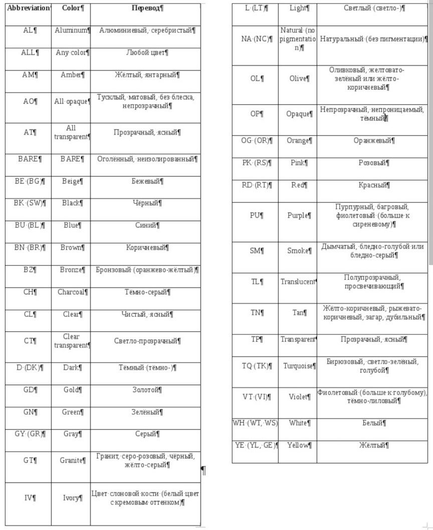 Обозначения цвета на английском 117 фото