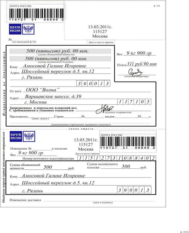 Образцы почтовых документов 105 фото