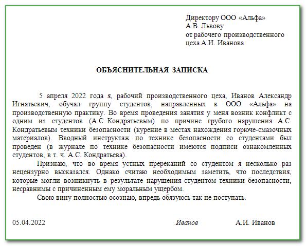 Образец Объяснительного Фото