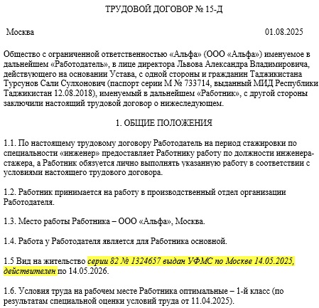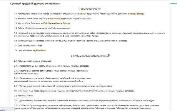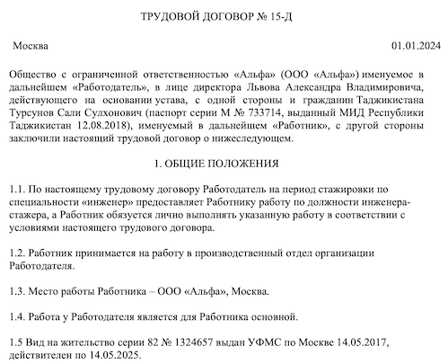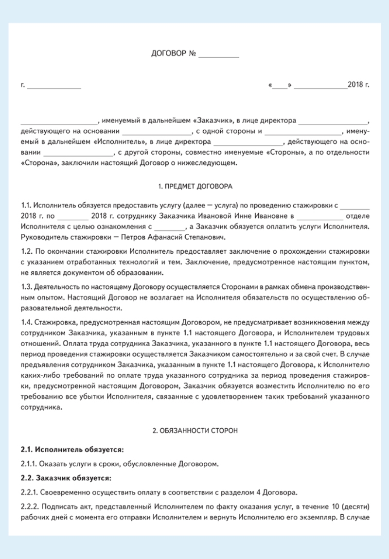 Образец договора стажера