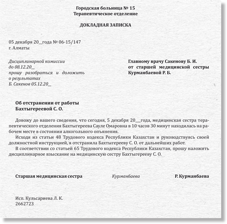 Образец докладной записки в школе