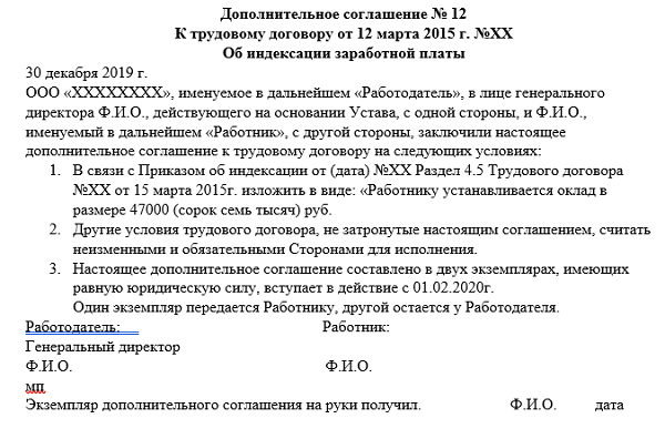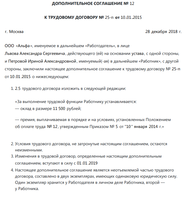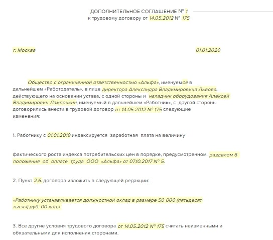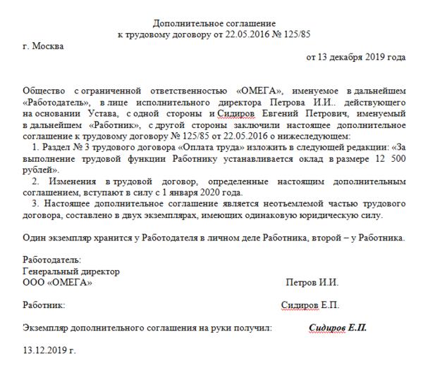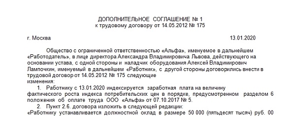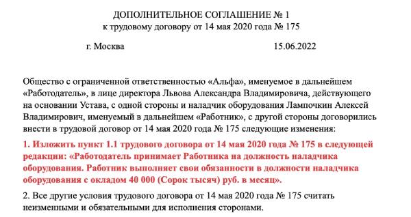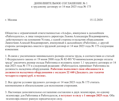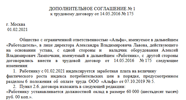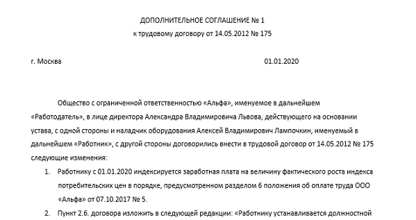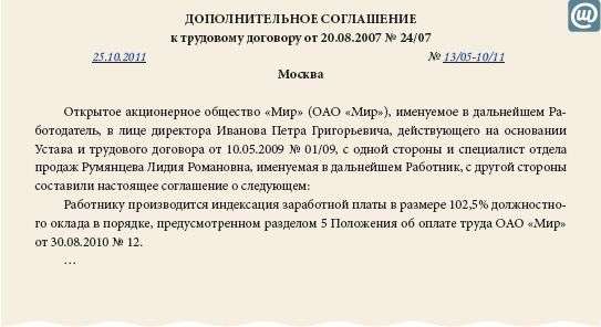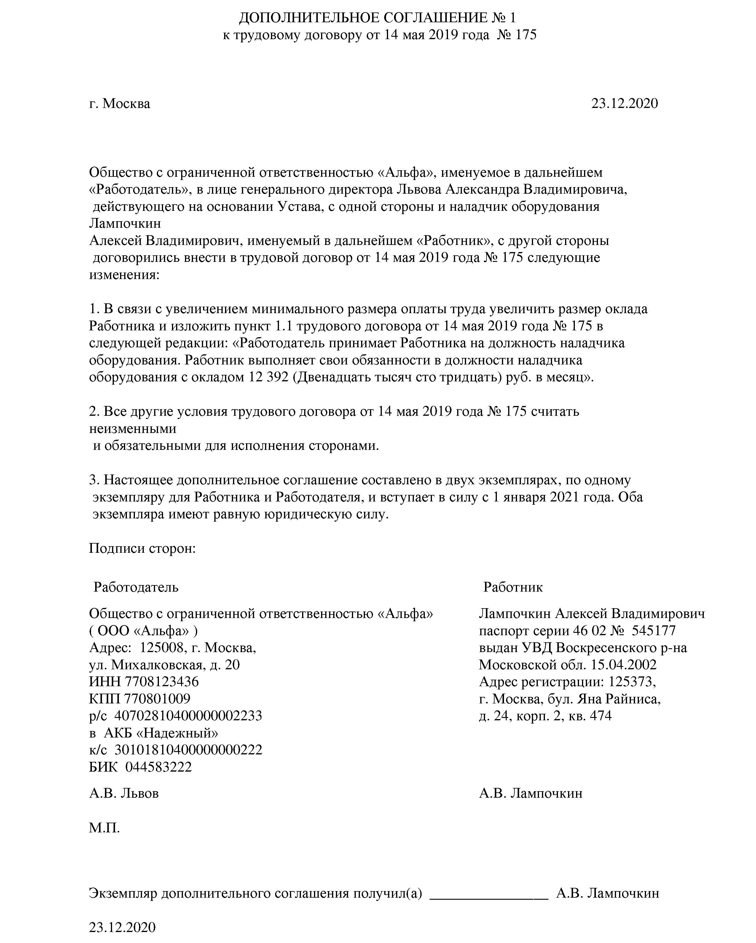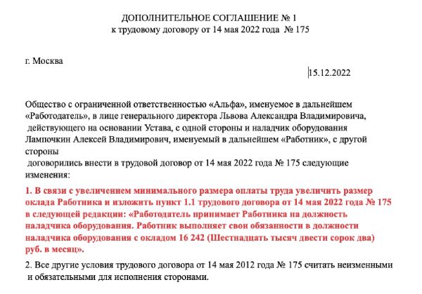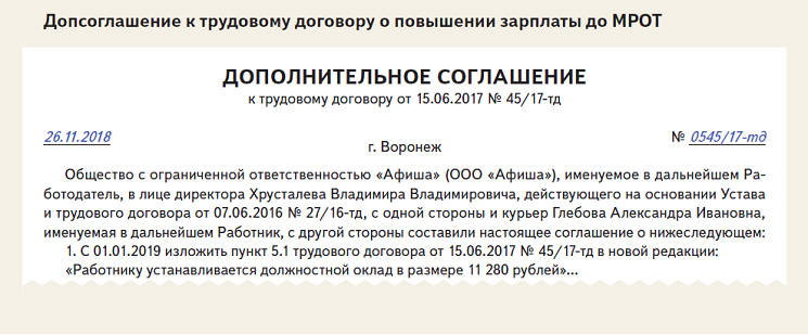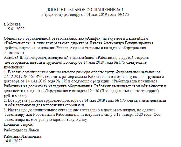 Образец доп соглашения об изменении мрот