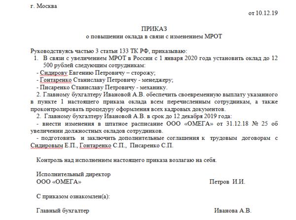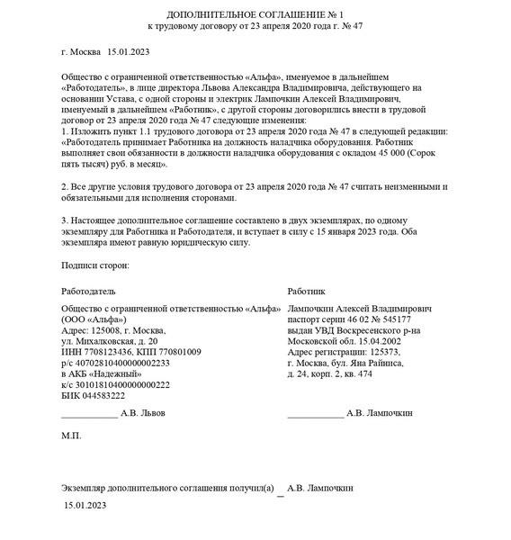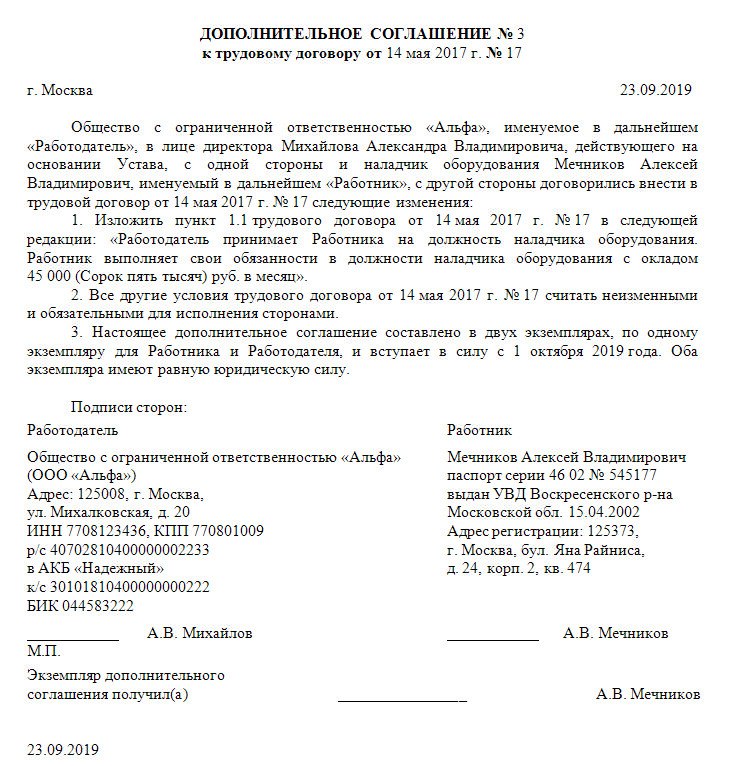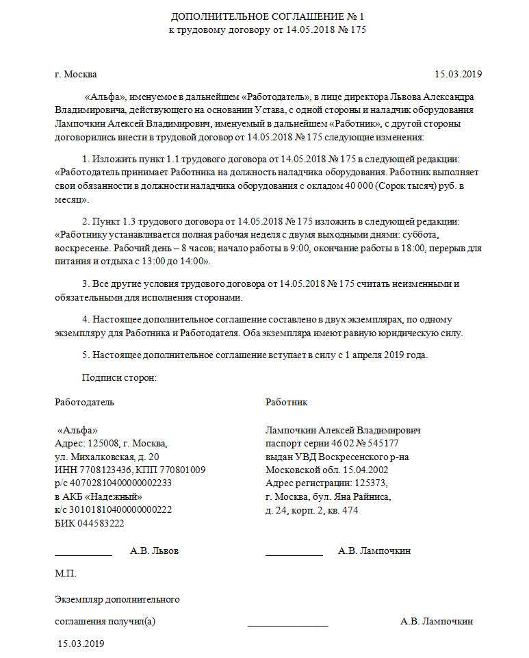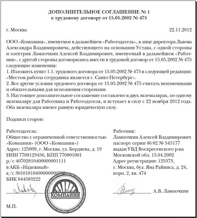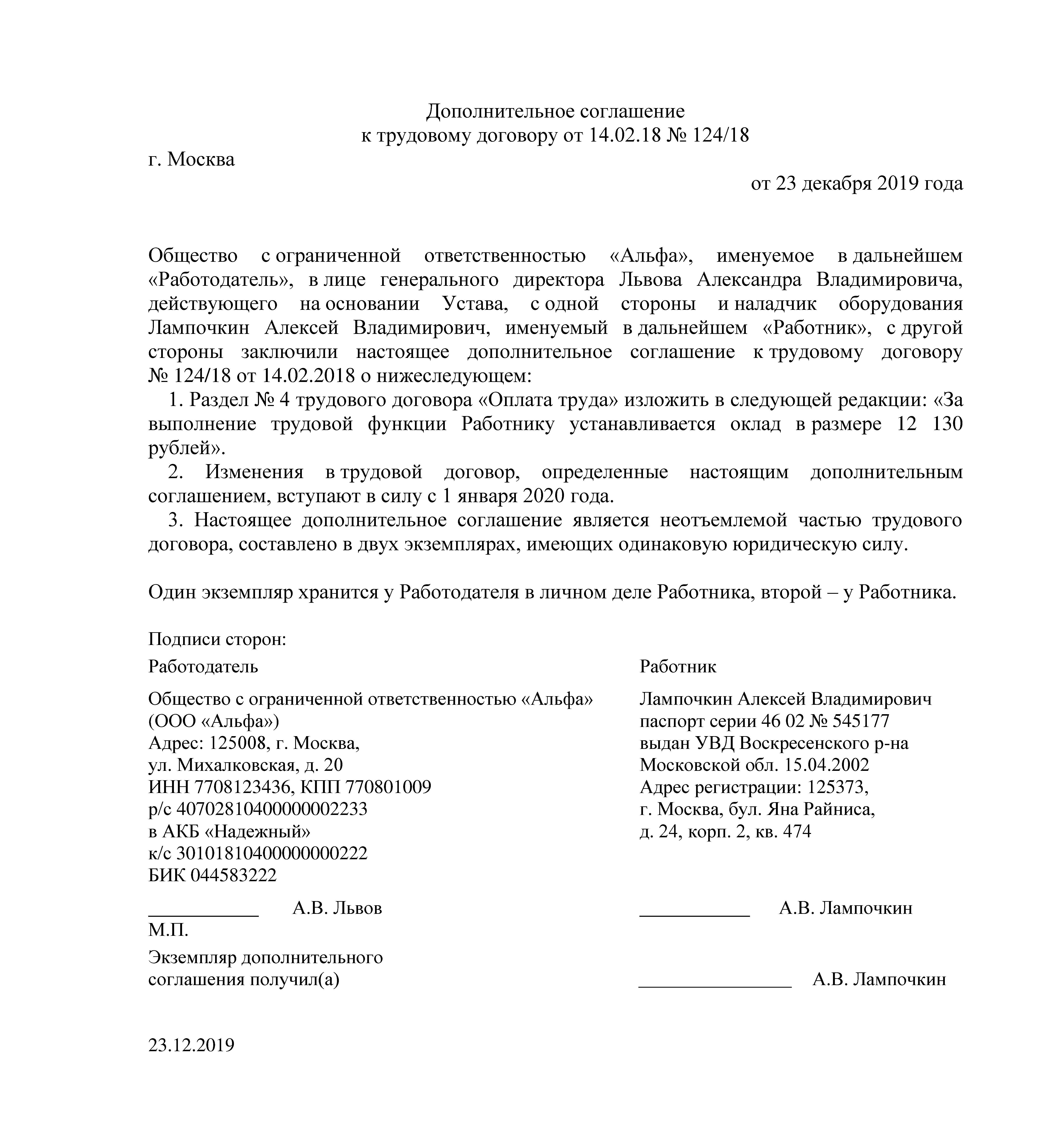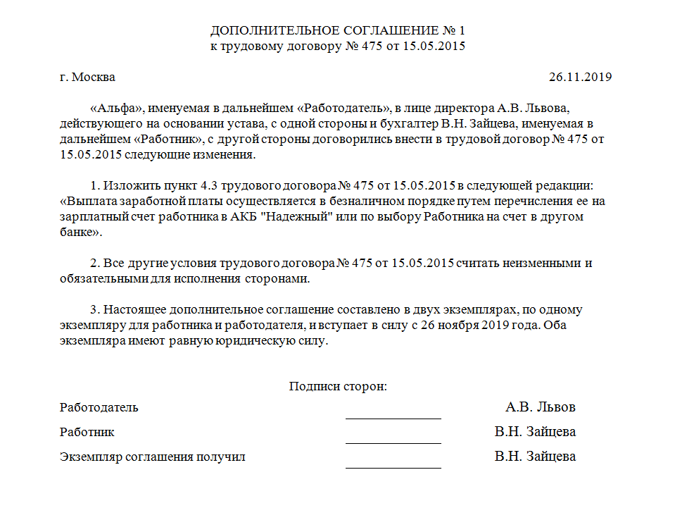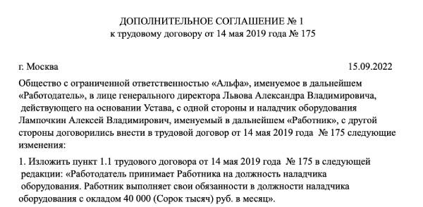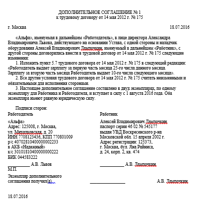 Образец доп соглашения об изменении мрот
