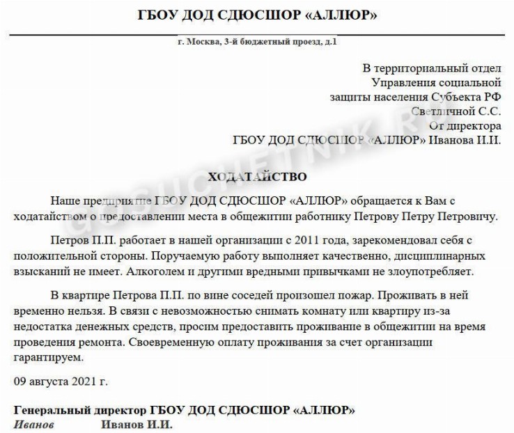 Образец ходатайства учреждения