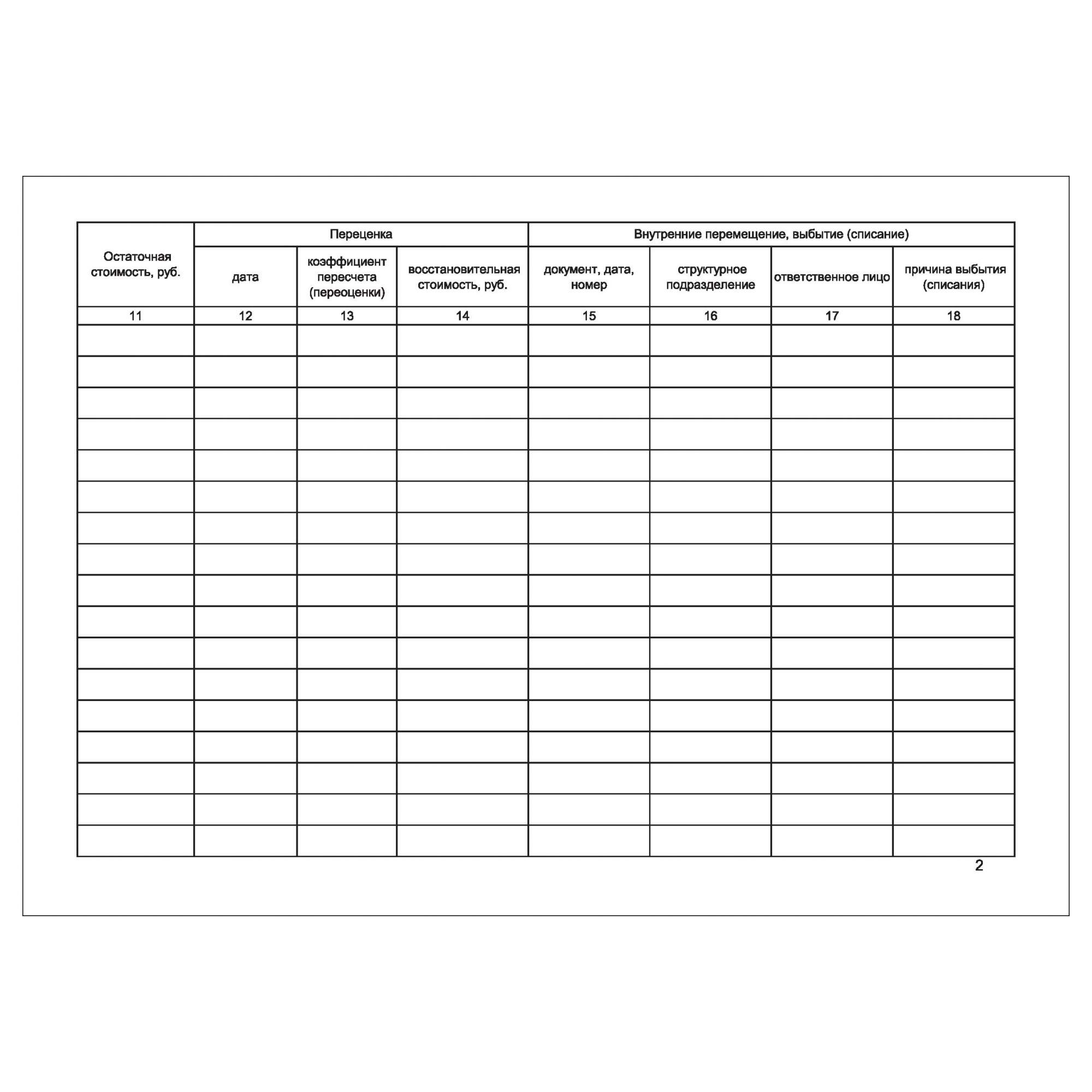 Образец инвентарной книги