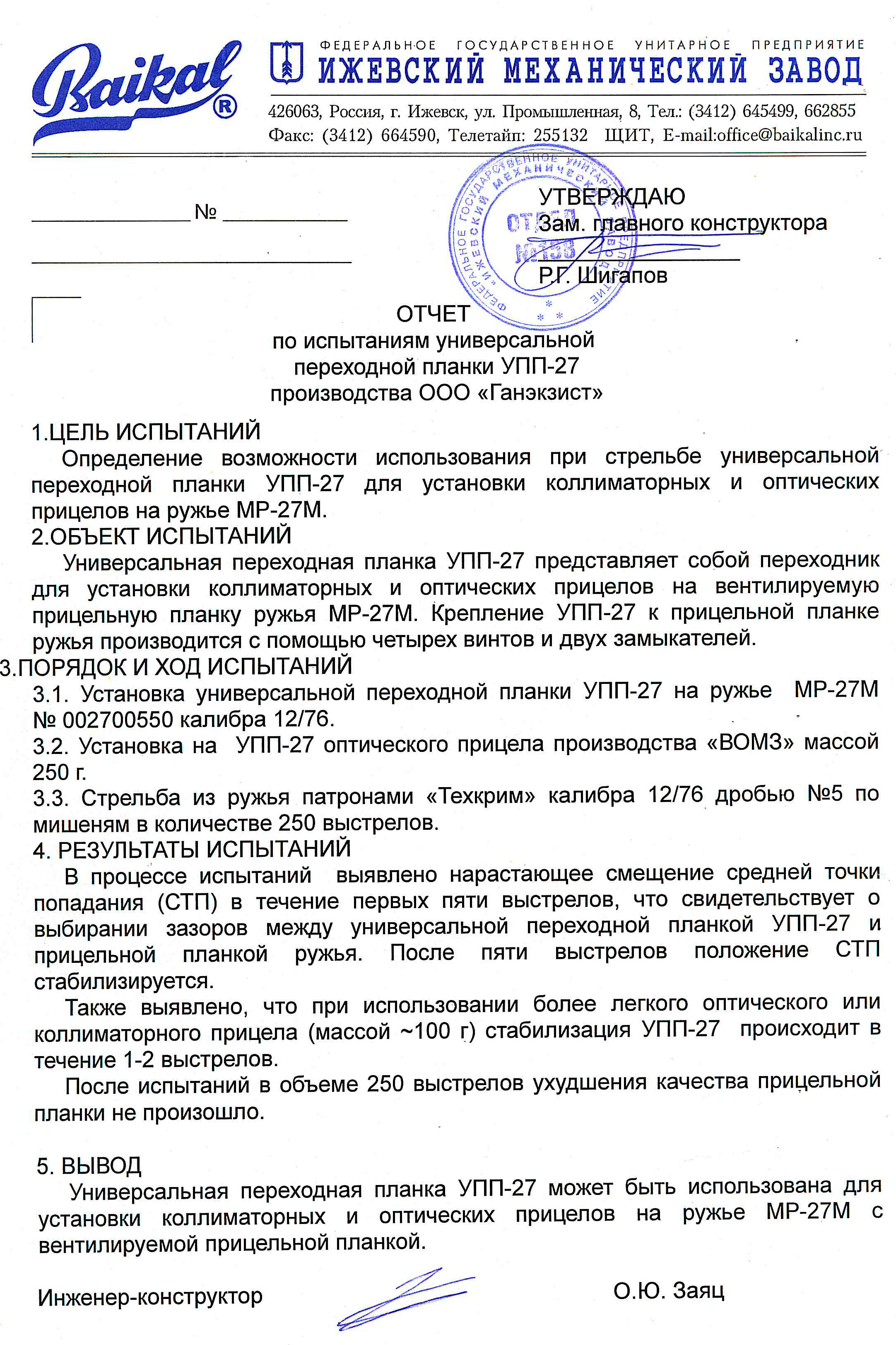 Образец отчета испытаний