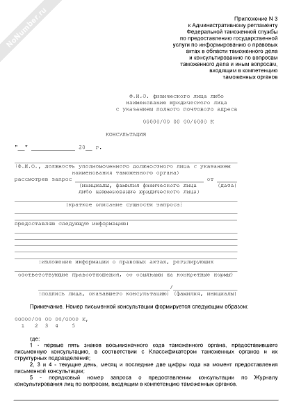 Образец письменной консультации