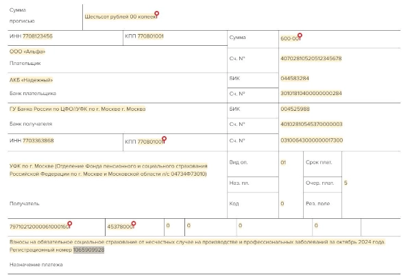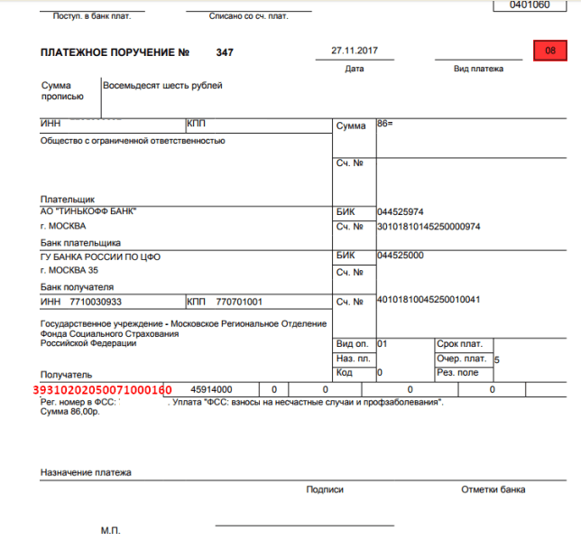 Образец платежки травматизм 2025 145 фото