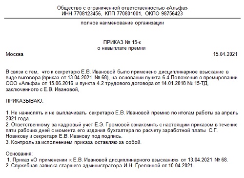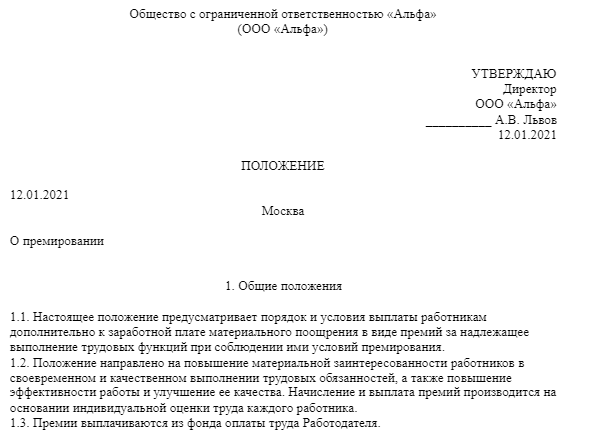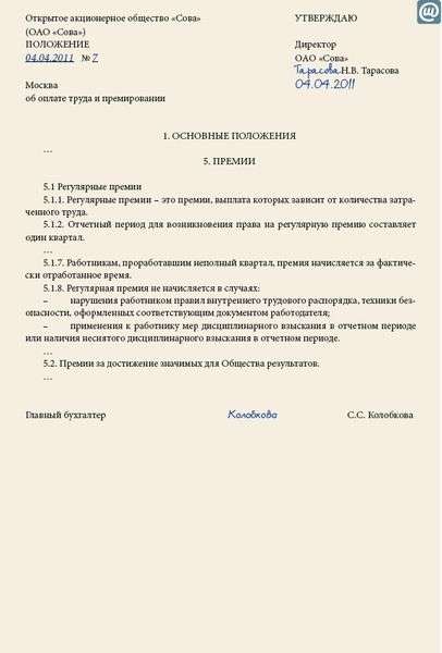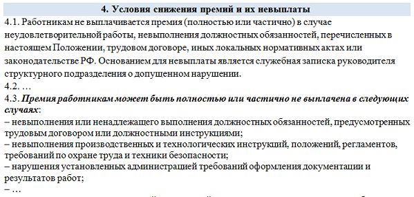 Образец положения о депремировании работников 129 фотографий