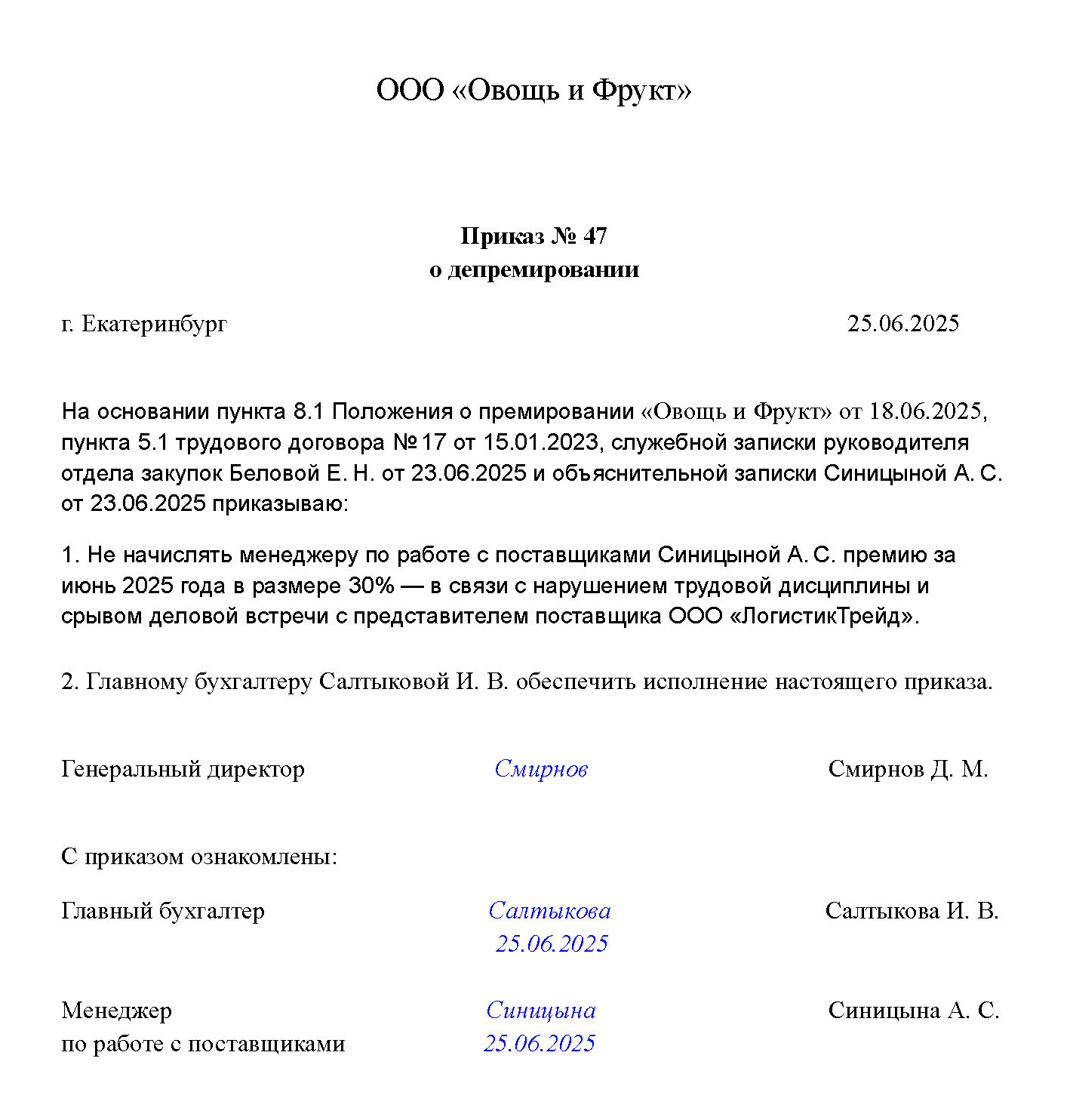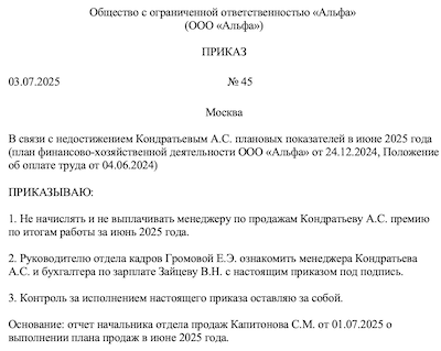 Образец положения о депремировании работников