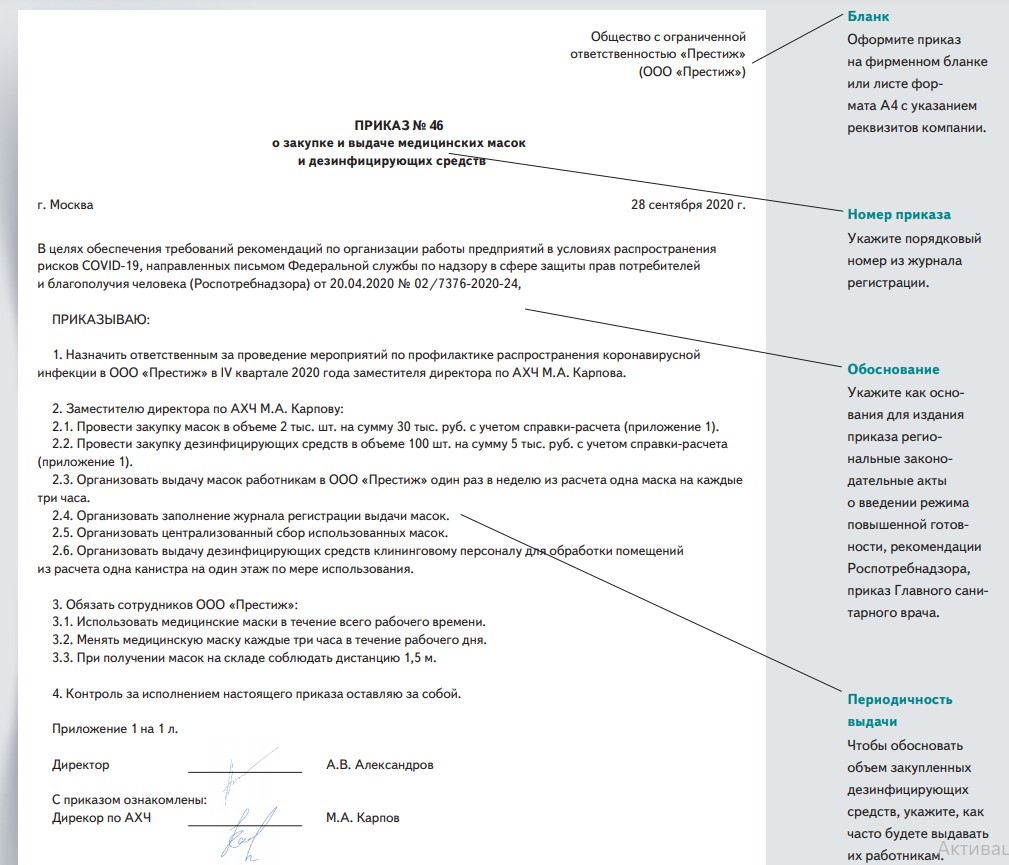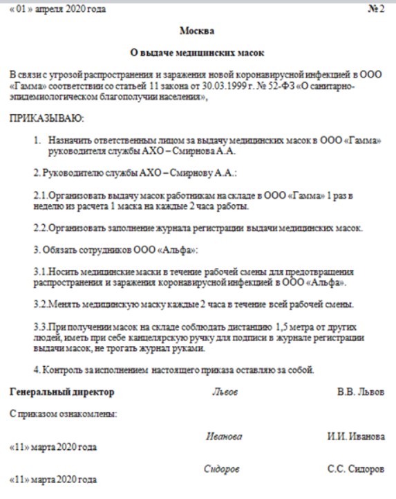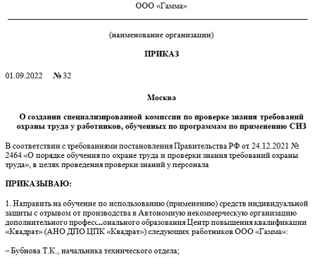 Образец приказа об обеспечении сиз