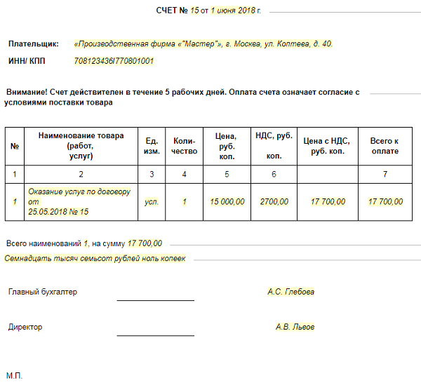 Образец счета бюджетного учреждения