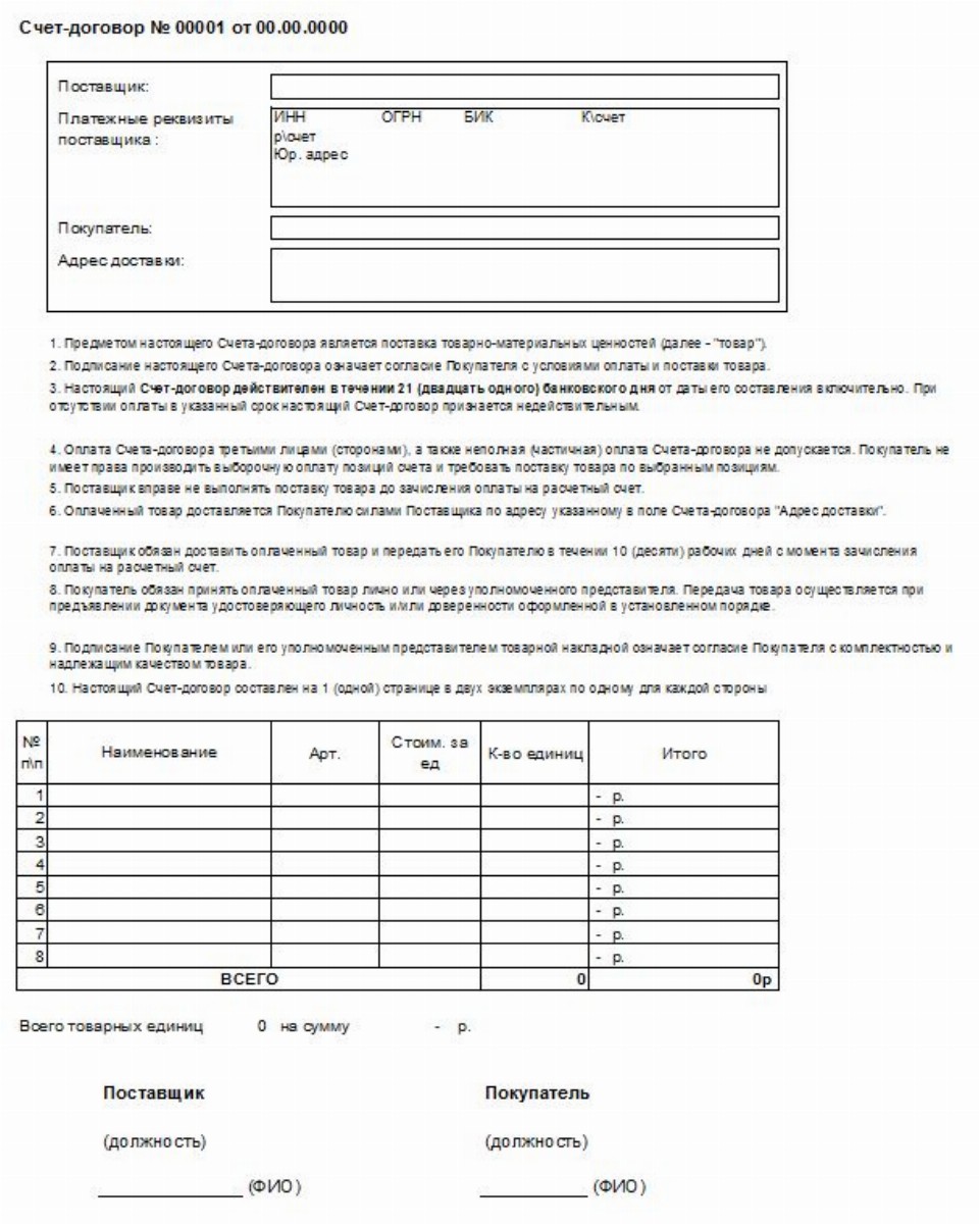 Образец счета договора на оплату