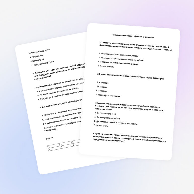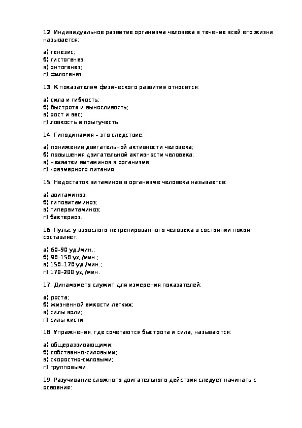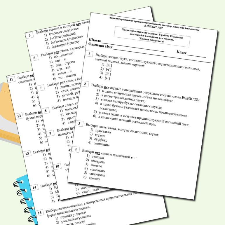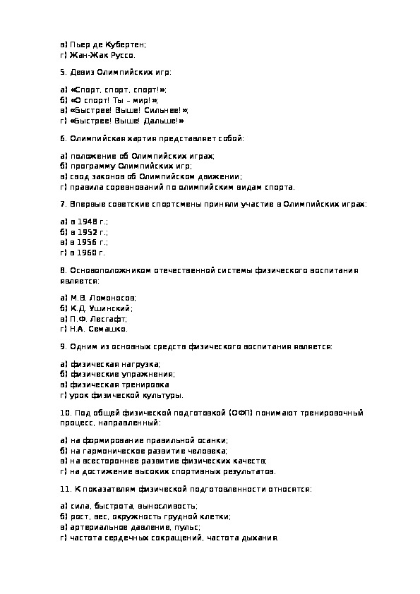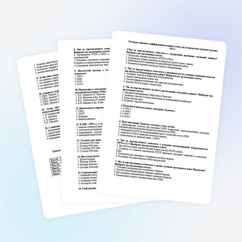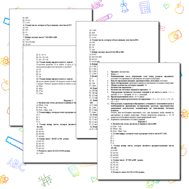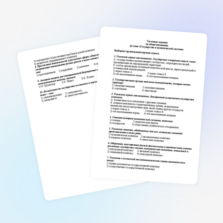 Образец тестовых заданий