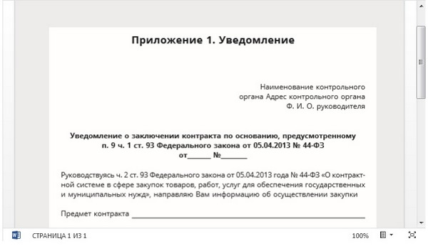 Образец уведомления о выполненных работах