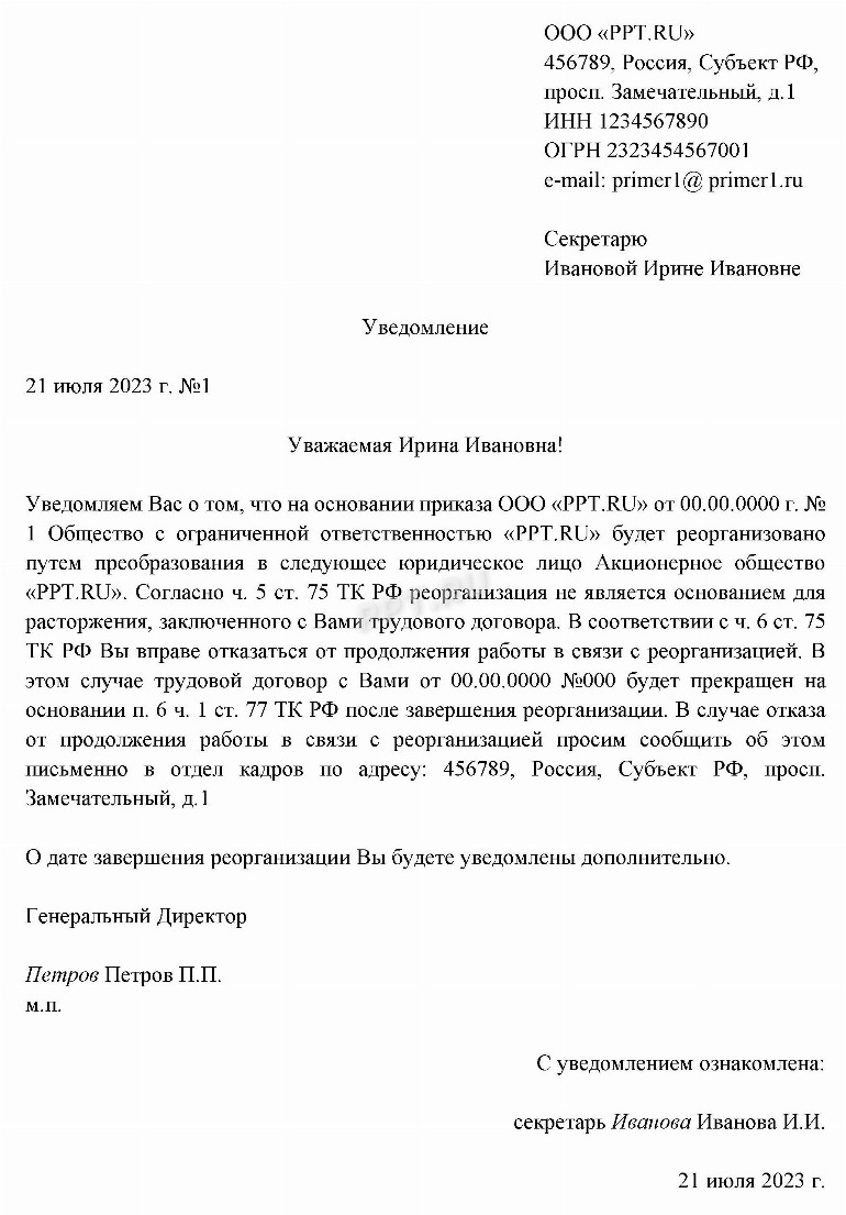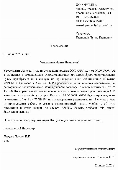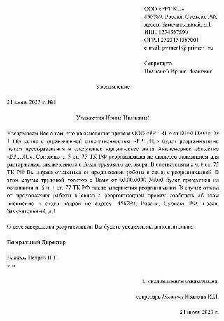 Образец уведомления работникам о реорганизации 173 фотографий