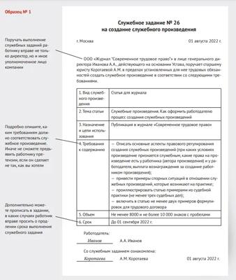 Образец задания работнику